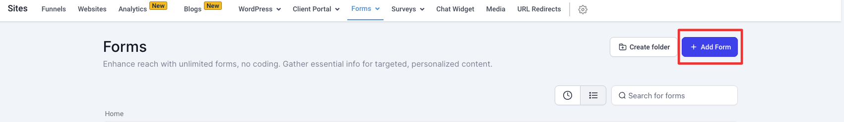Initiate a New Form: Click on "Add Form" to begin crafting your new form.
