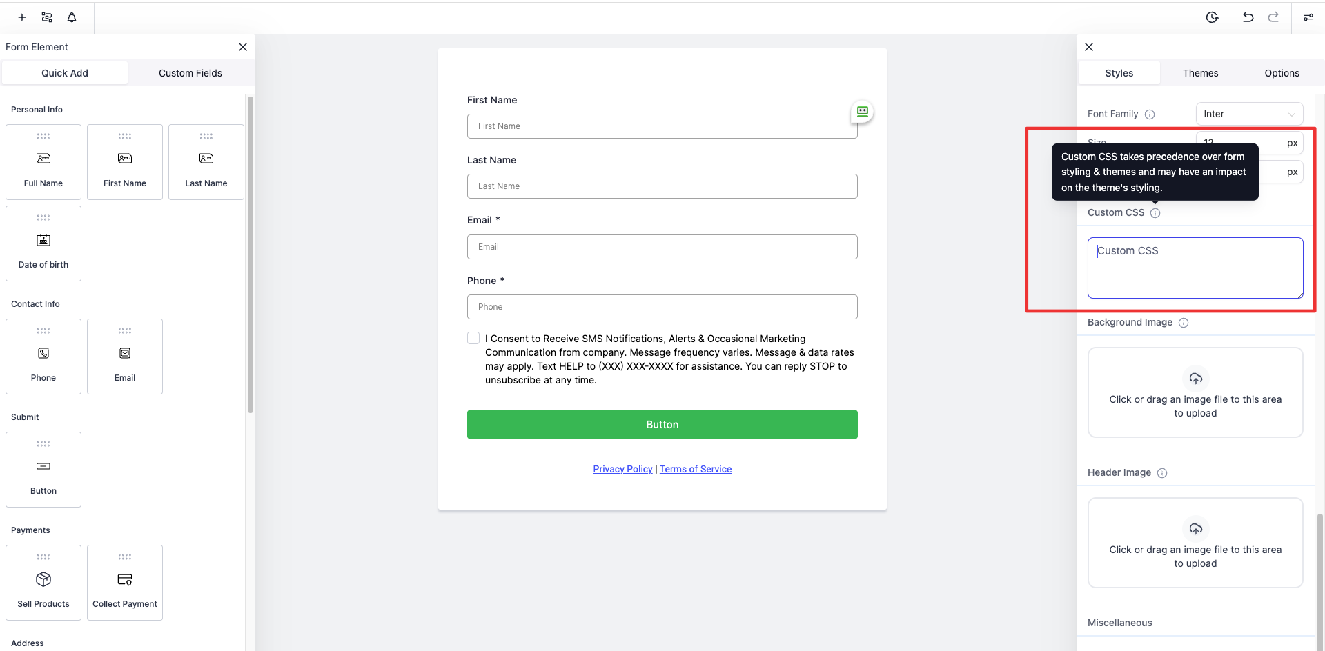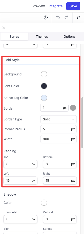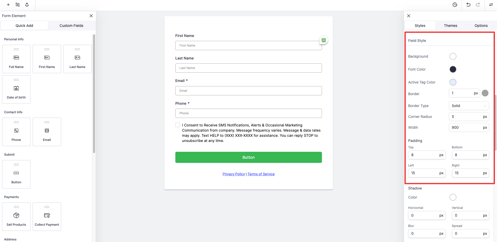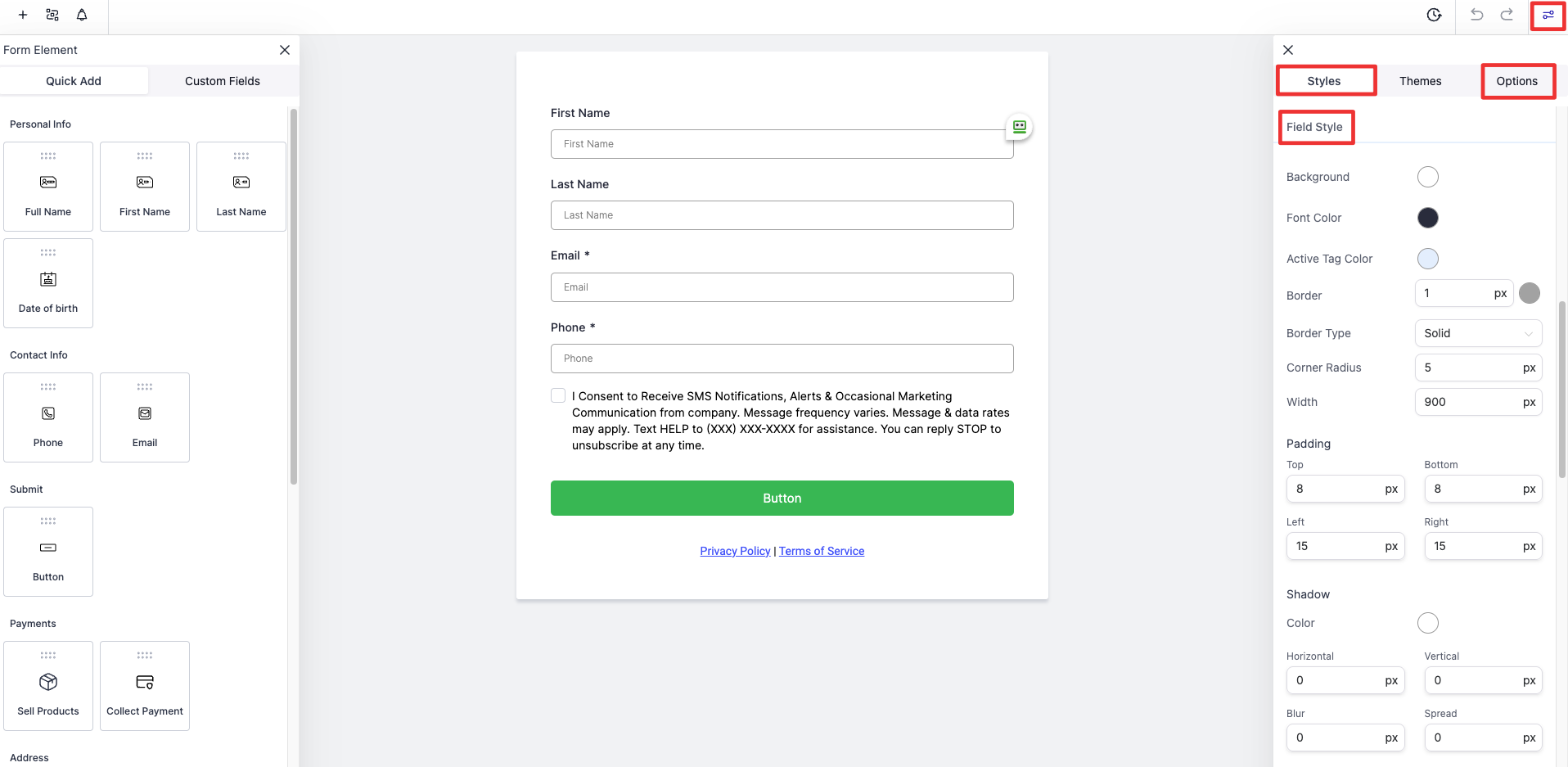 Customization Options: In the Styles tab, you have various options to customize your form's look, including background color, corner radius, and width.