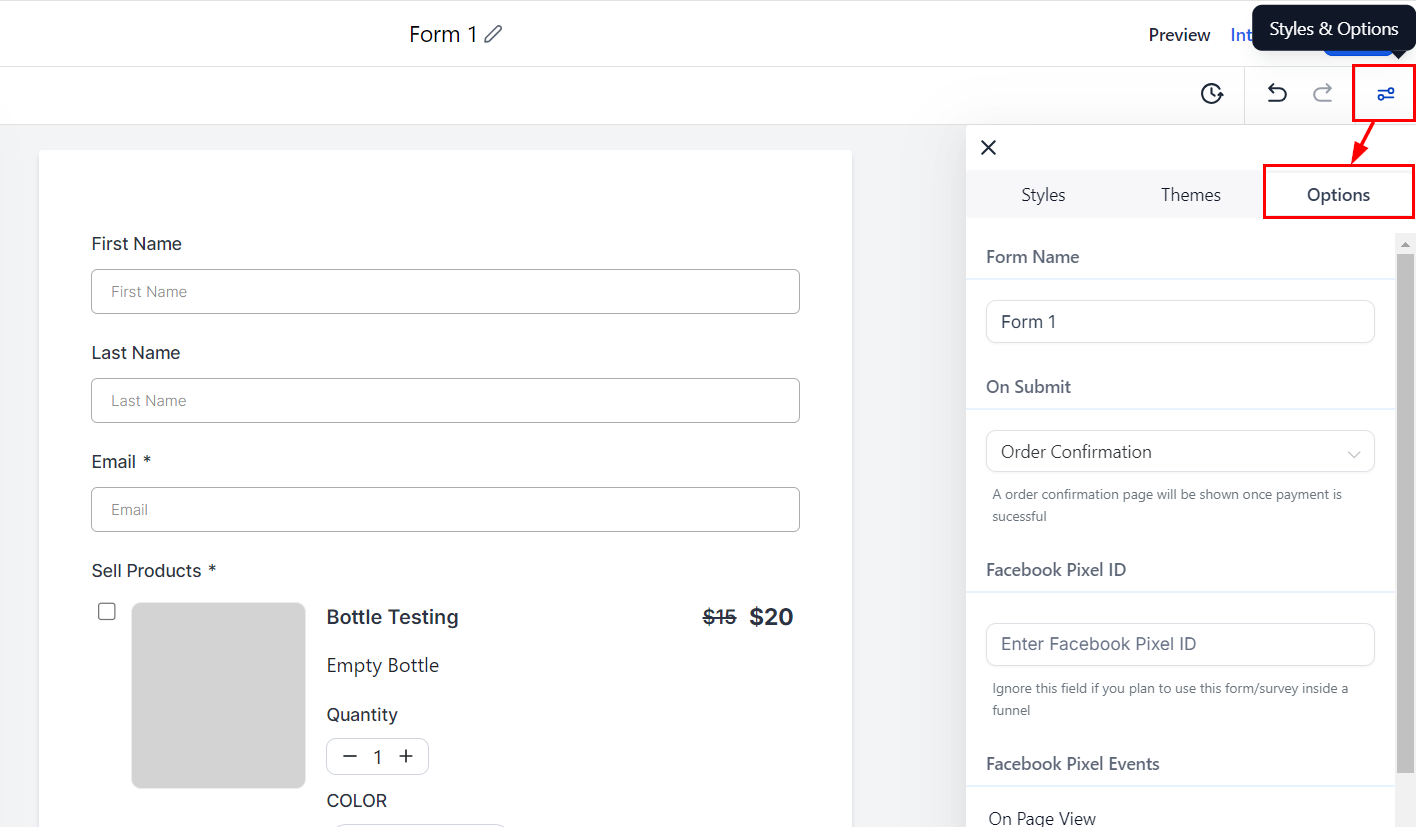 Add Products: Incorporate the products you wish to offer within your form. You can add up to 20 products to this feature. Additionally, select the information to be displayed by checking the box next to each corresponding option.