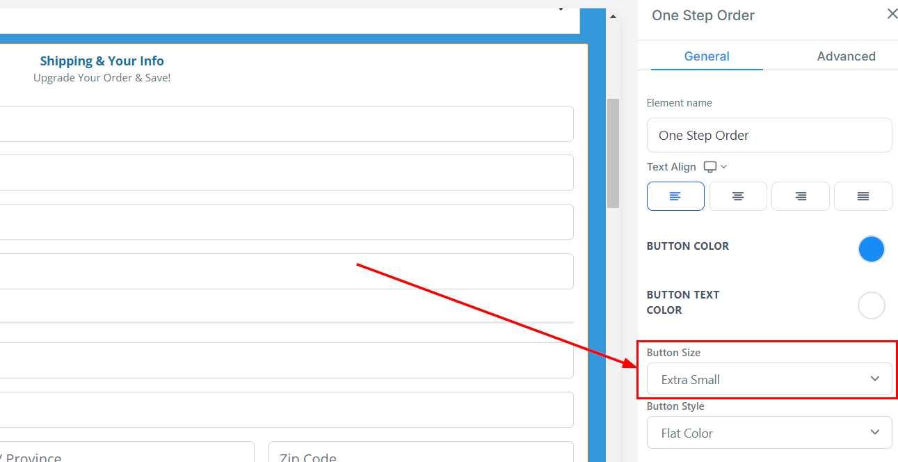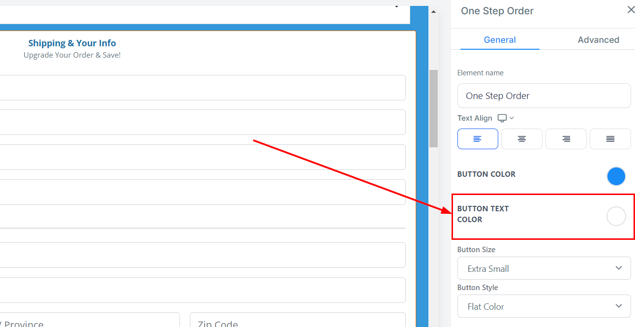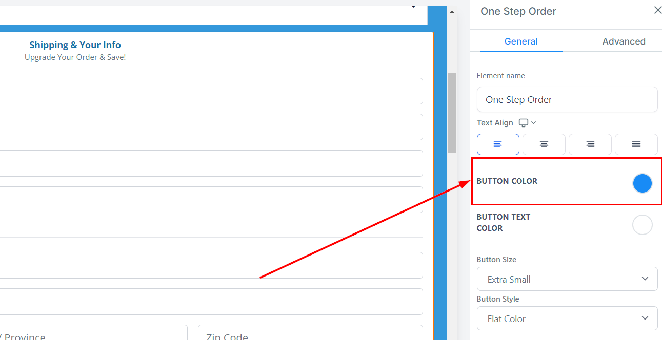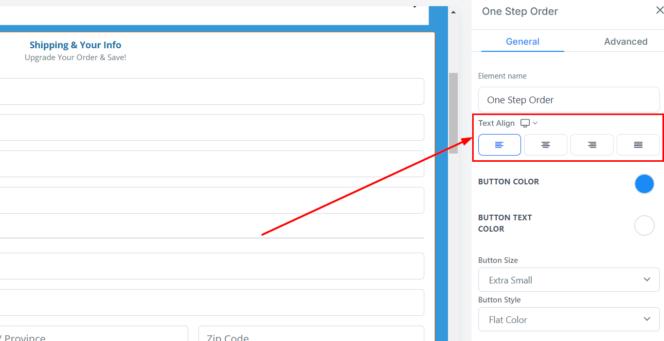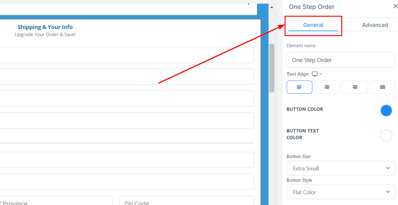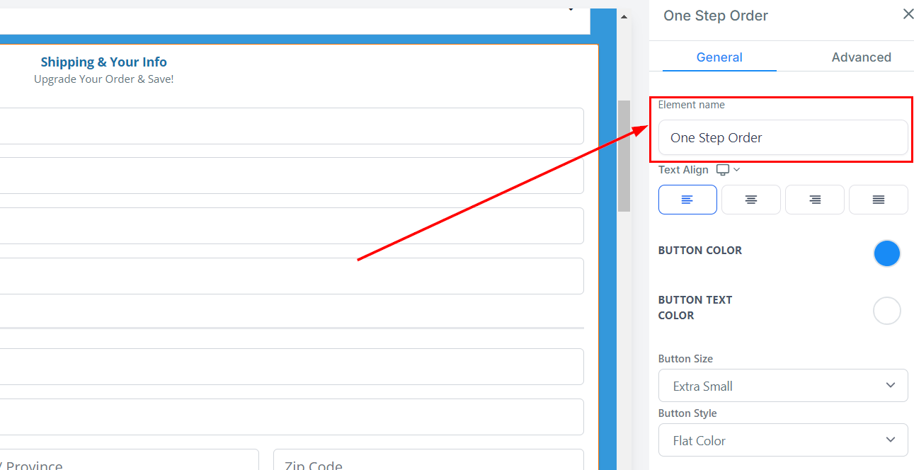 Using the 1-Step Order Form Element is a great way to obtain shipping details regarding your customer, along with other useful information. Select the element to open its settings on the right-hand side of your builder.