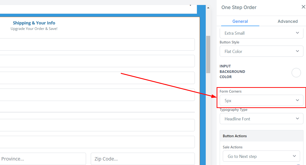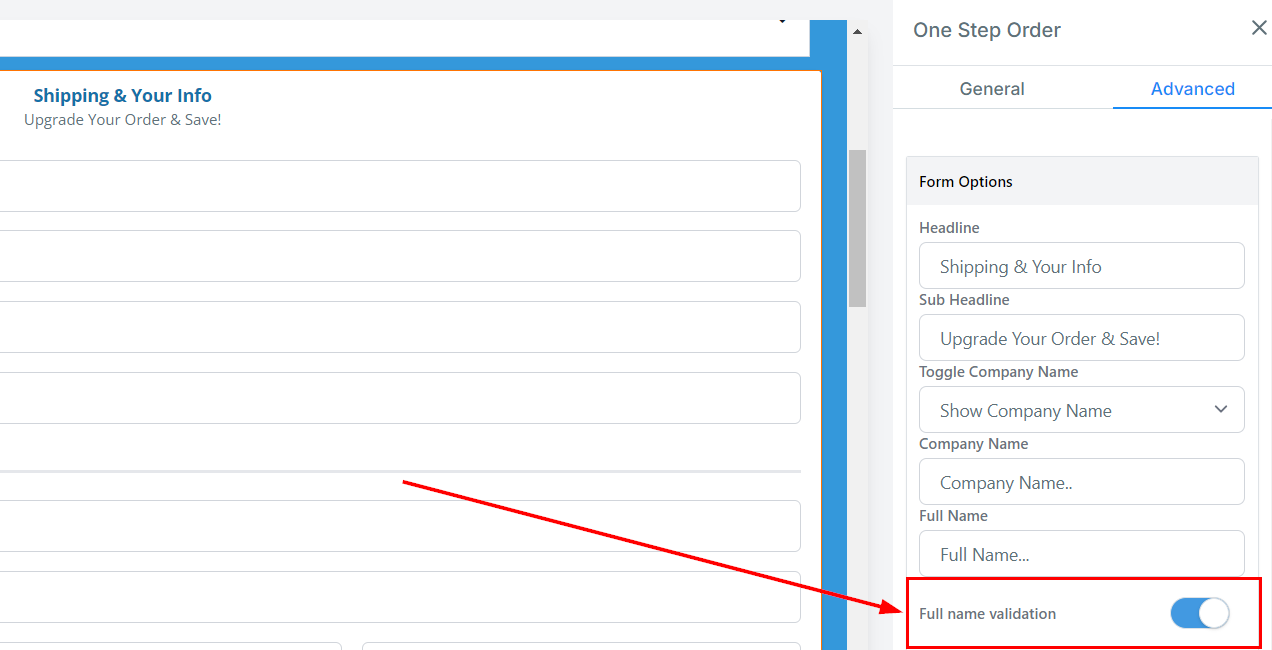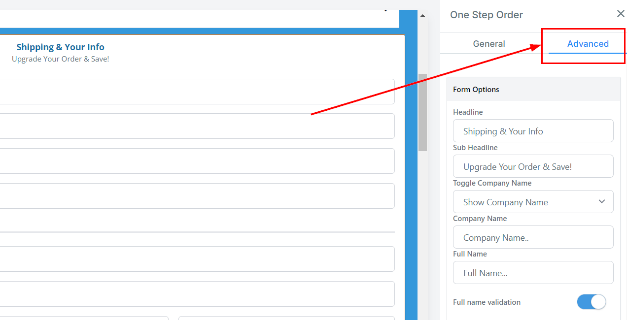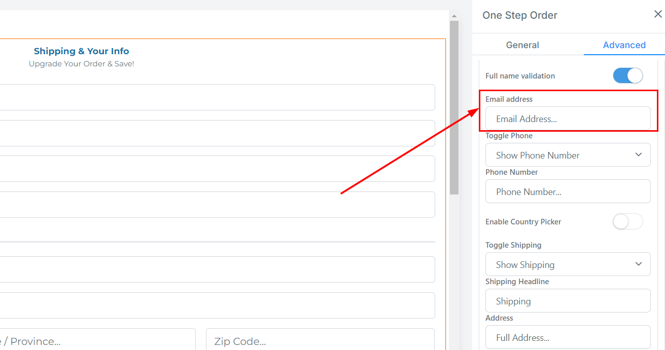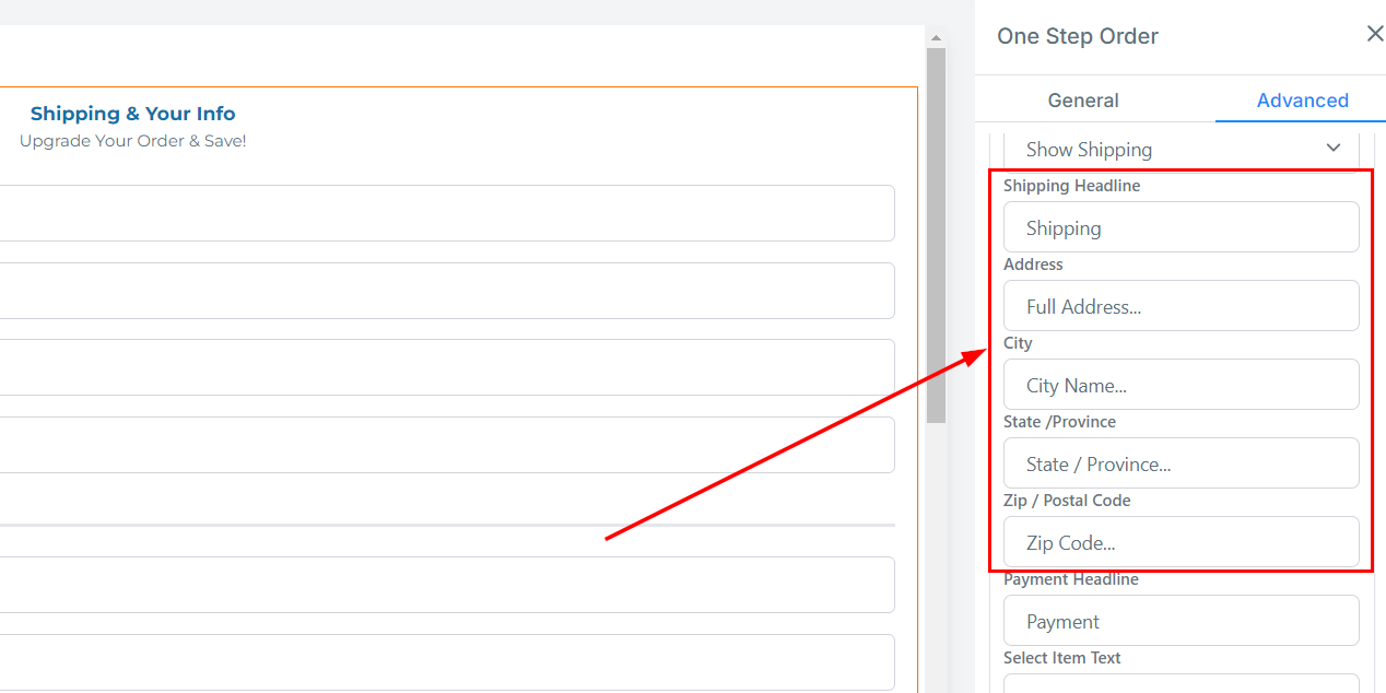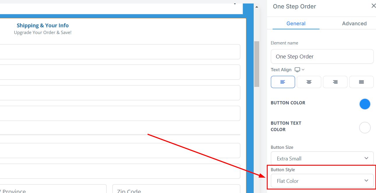 Using the 1-Step Order Form Element is a great way to obtain shipping details regarding your customer, along with other useful information. Select the element to open its settings on the right-hand side of your builder.