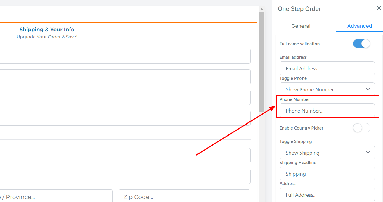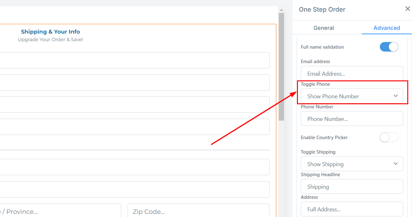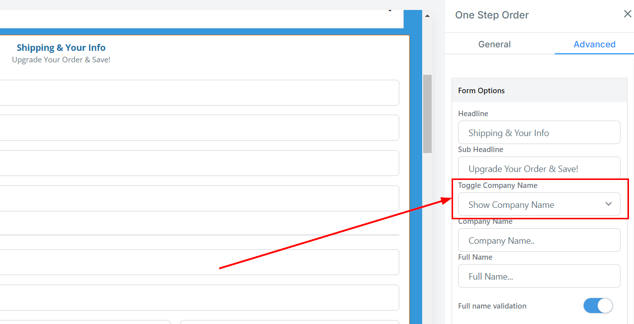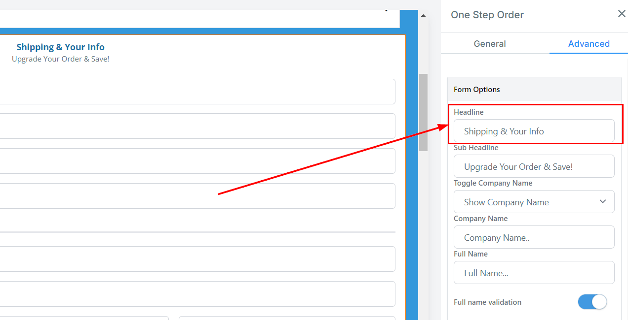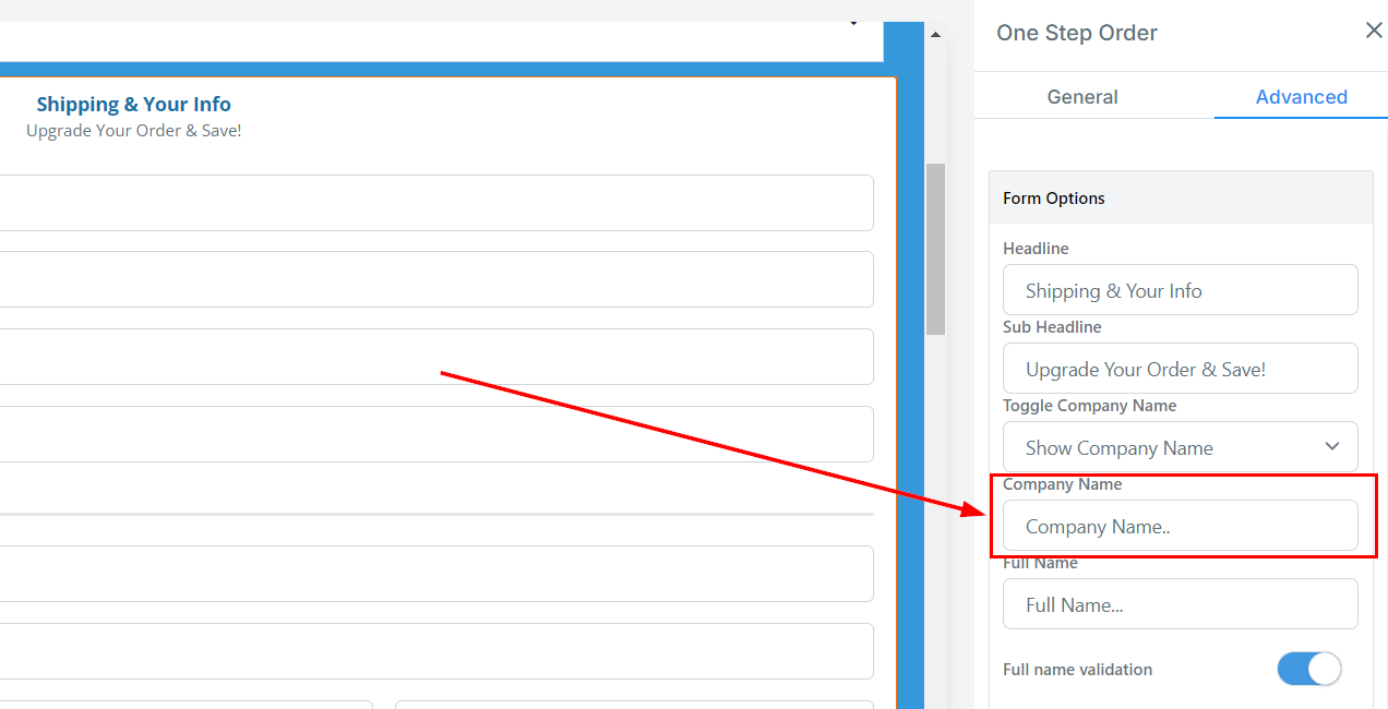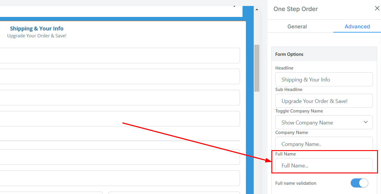 Using the 1-Step Order Form Element is a great way to obtain shipping details regarding your customer, along with other useful information. Select the element to open its settings on the right-hand side of your builder.