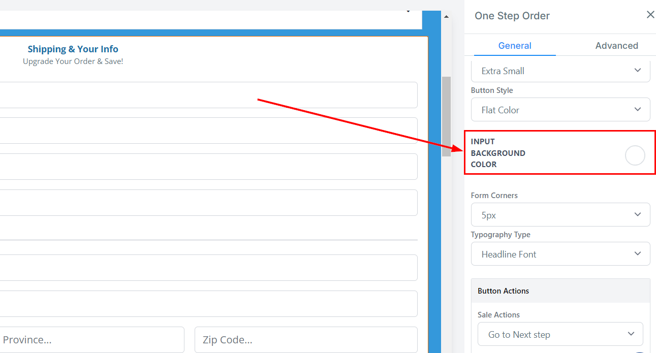 Under the Order Form Customization feature, you can add a background color to your order form input by selecting the desired color.
