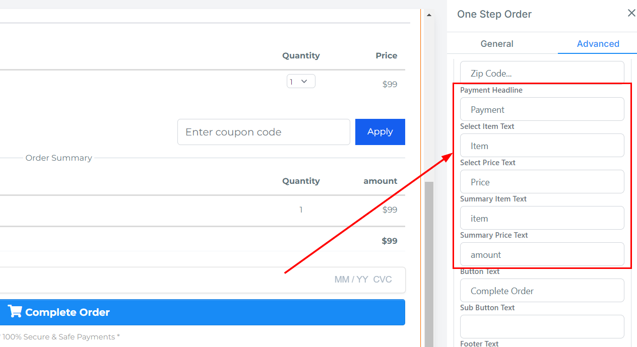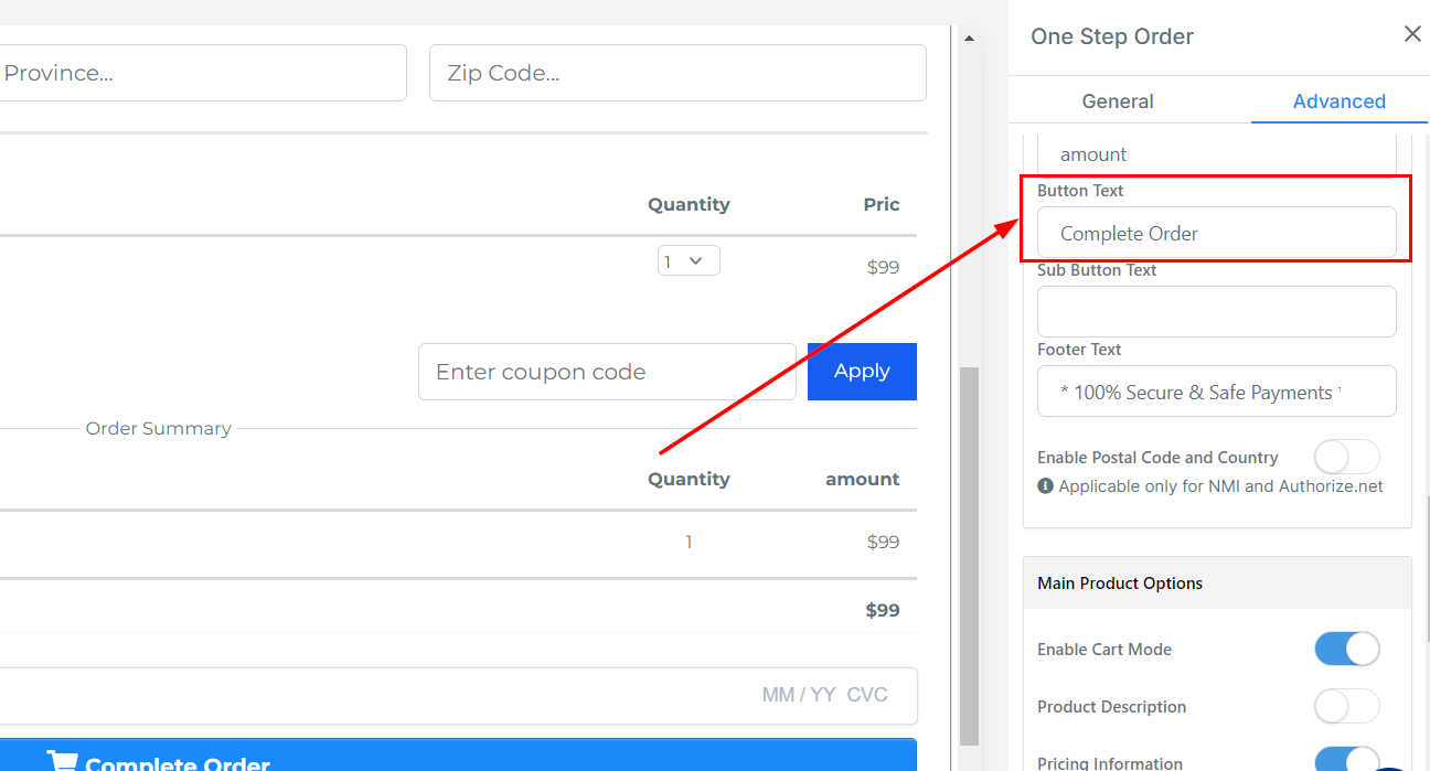 Under Button Text, you can customize the text displayed that allows customers to confirm the order.