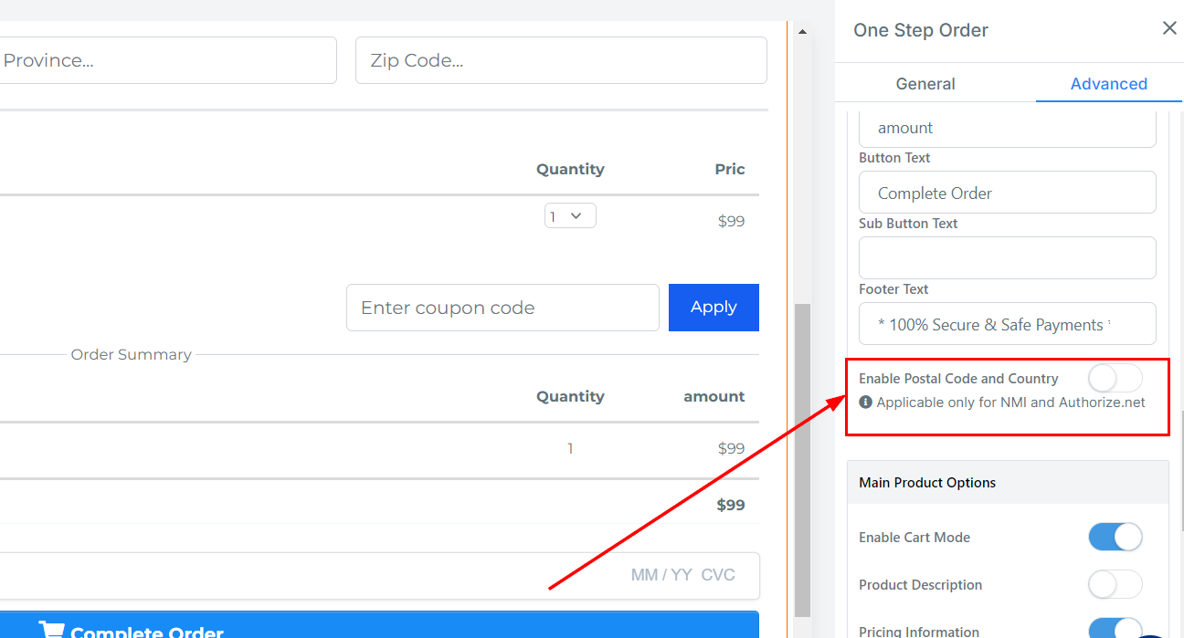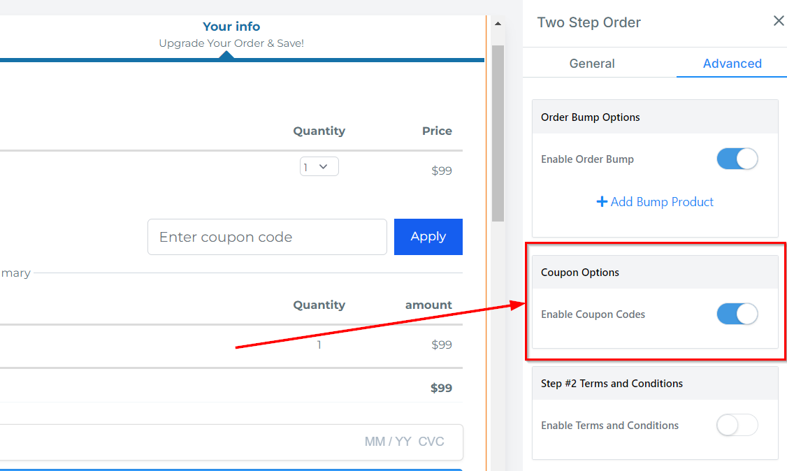 Offer discounts to your customers using promotional codes by toggling the βEnable Coupon Codesβ switch.