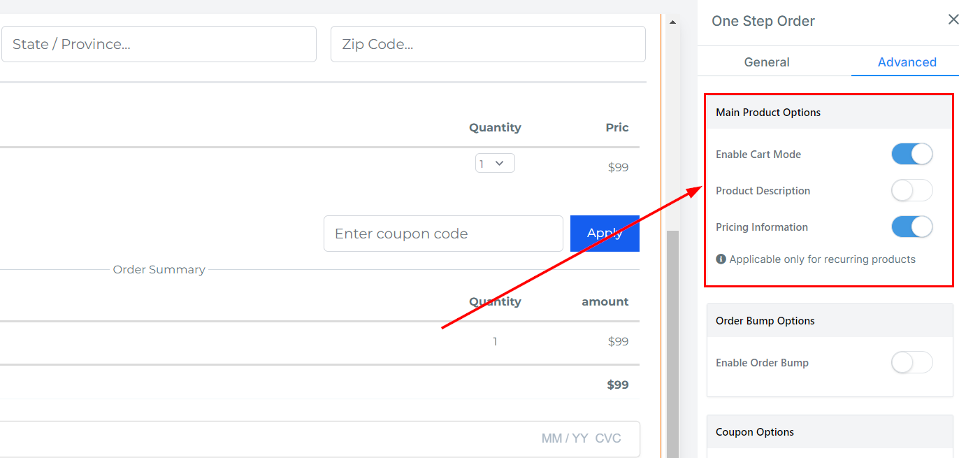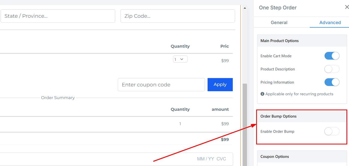 Enable Order Bump: Toggle this switch to enable order bumps to your order form.