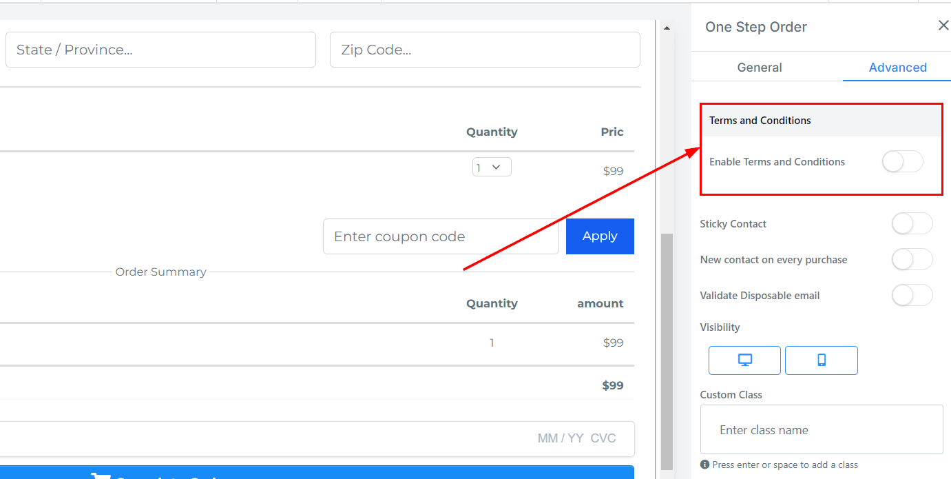 Enabling this feature allows the terms and conditions checkbox to be present on both steps for 2-step order forms. Customers will have to agree to the specified terms and conditions to proceed with the order.
