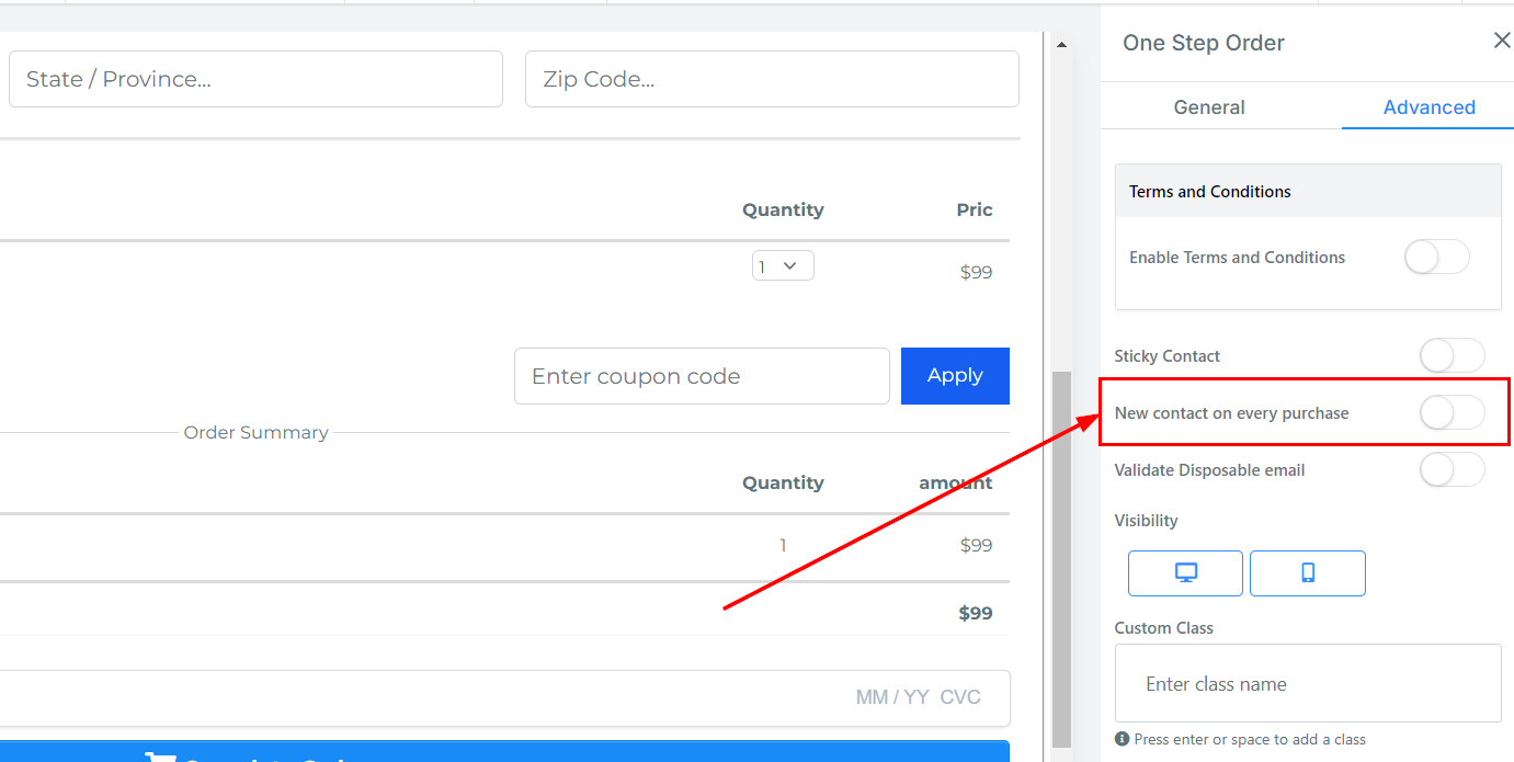 If you want to create a new contact for every purchase, toggle on or off the New Contact on the Every Purchase tab.
