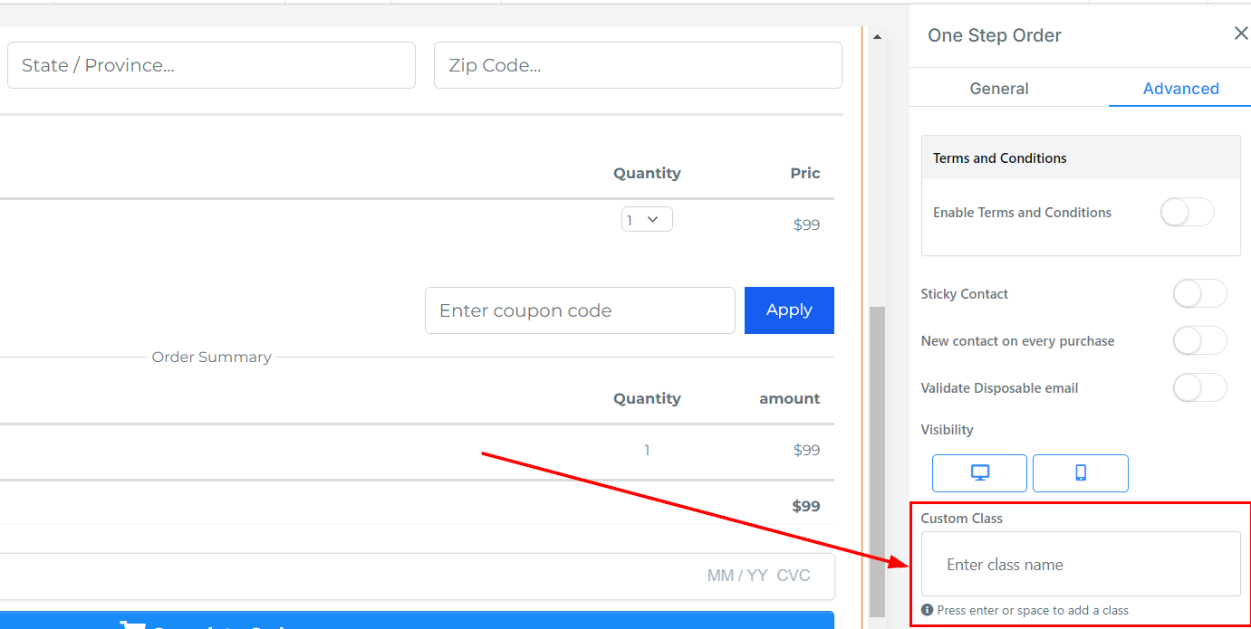 In the Custom Class field, you can enter your preferred class to customize the form field.