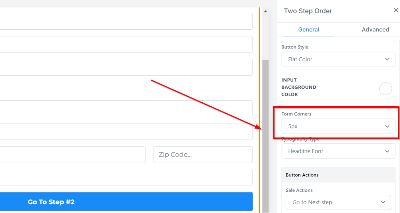 Under Form Corner, you can adjust the degree of curvature for the edges of your form fields.