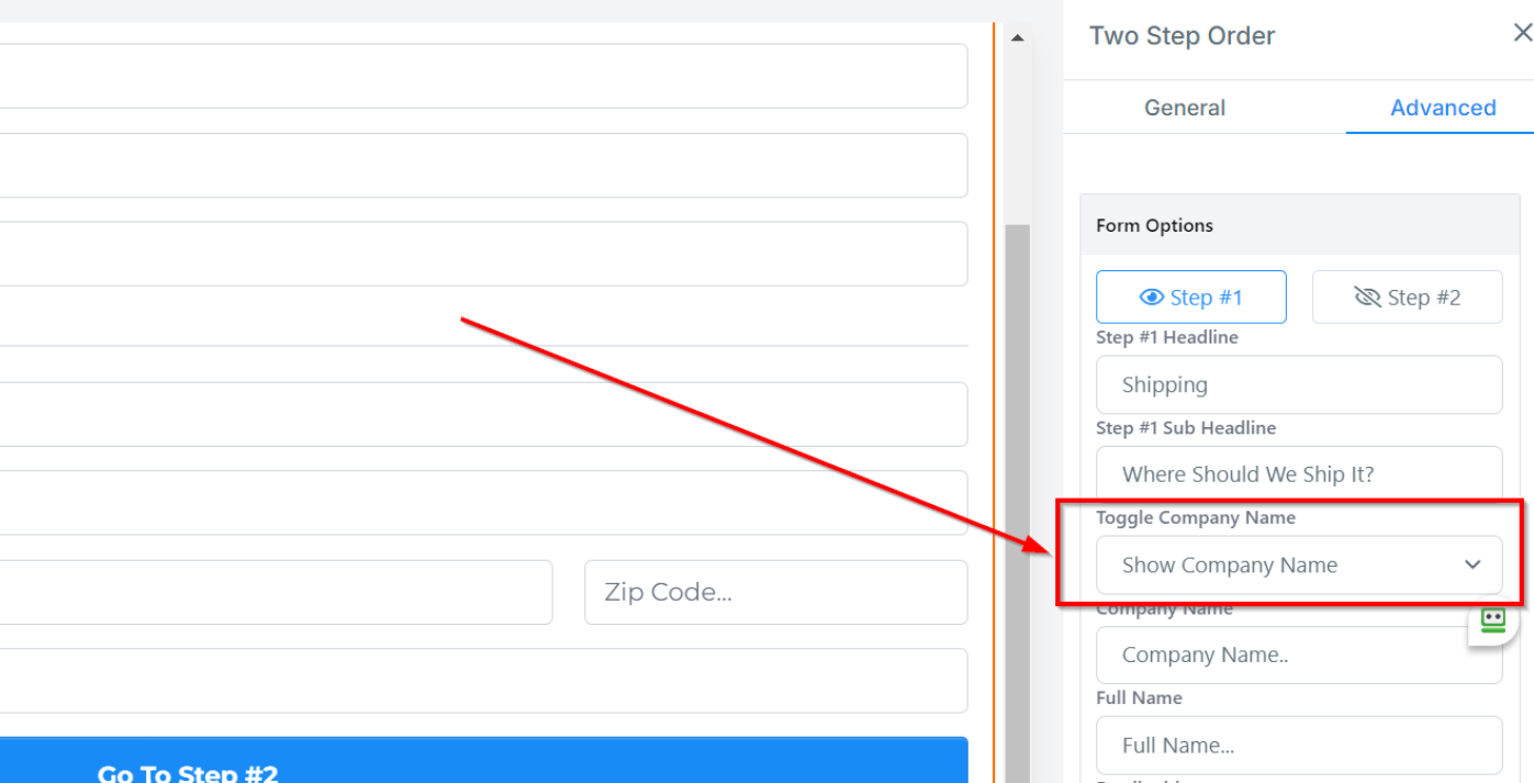 Toggle Company Name