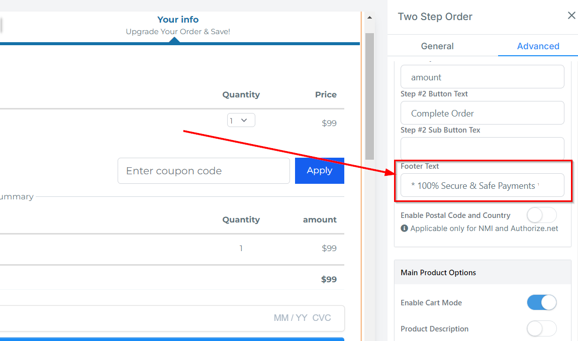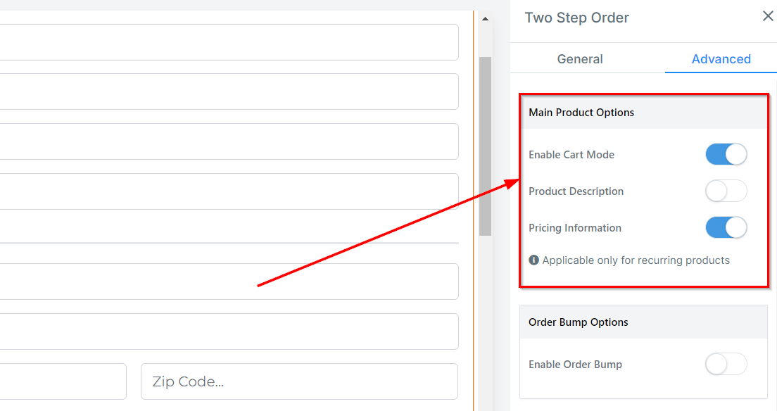 Pricing Information: Display the recurring and trial information by enabling this setting. This toggle is enabled for new funnels.