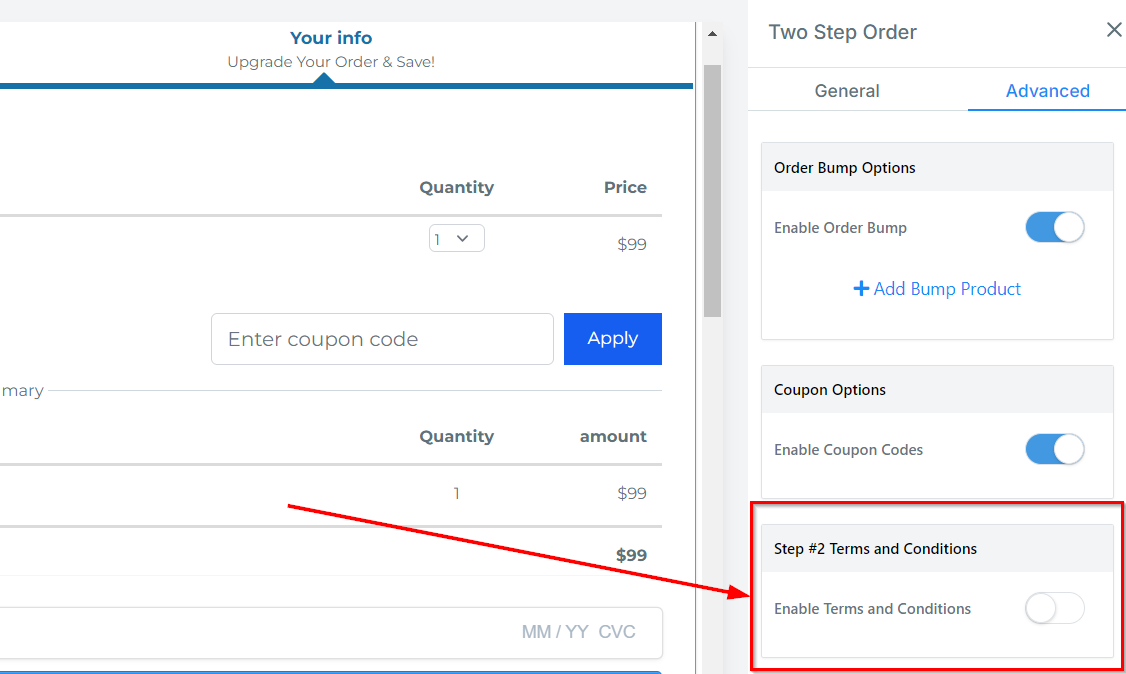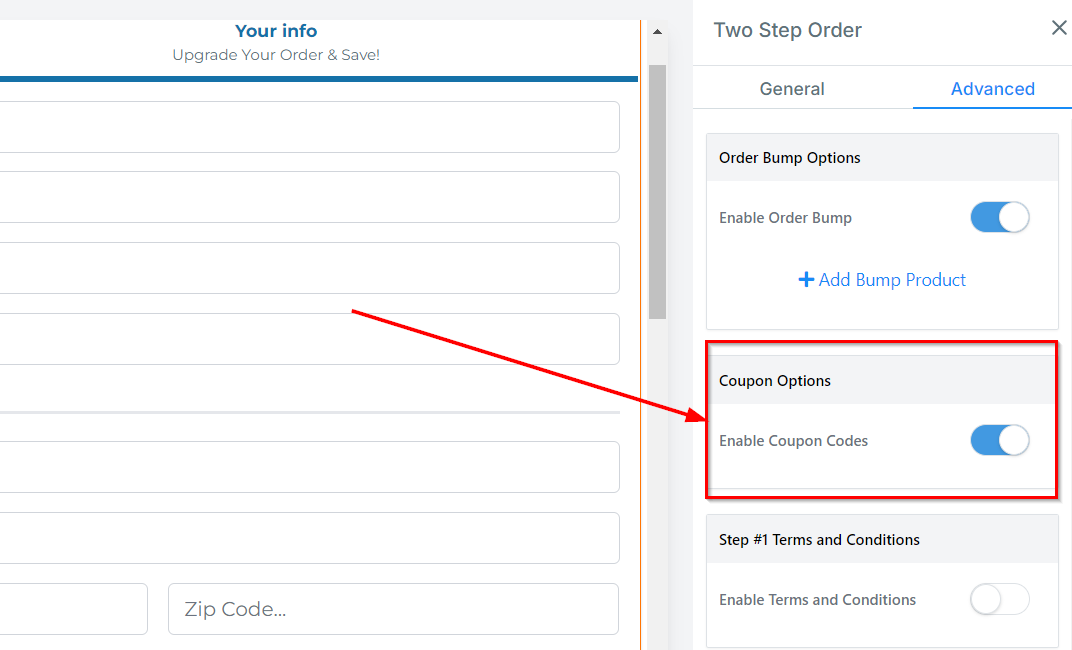Enable Order Bump: Toggle this switch to enable order bumps to your order form.