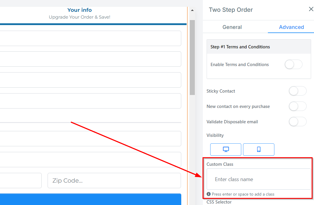 You can input a Custom Class in the given field, giving you even more customization options!