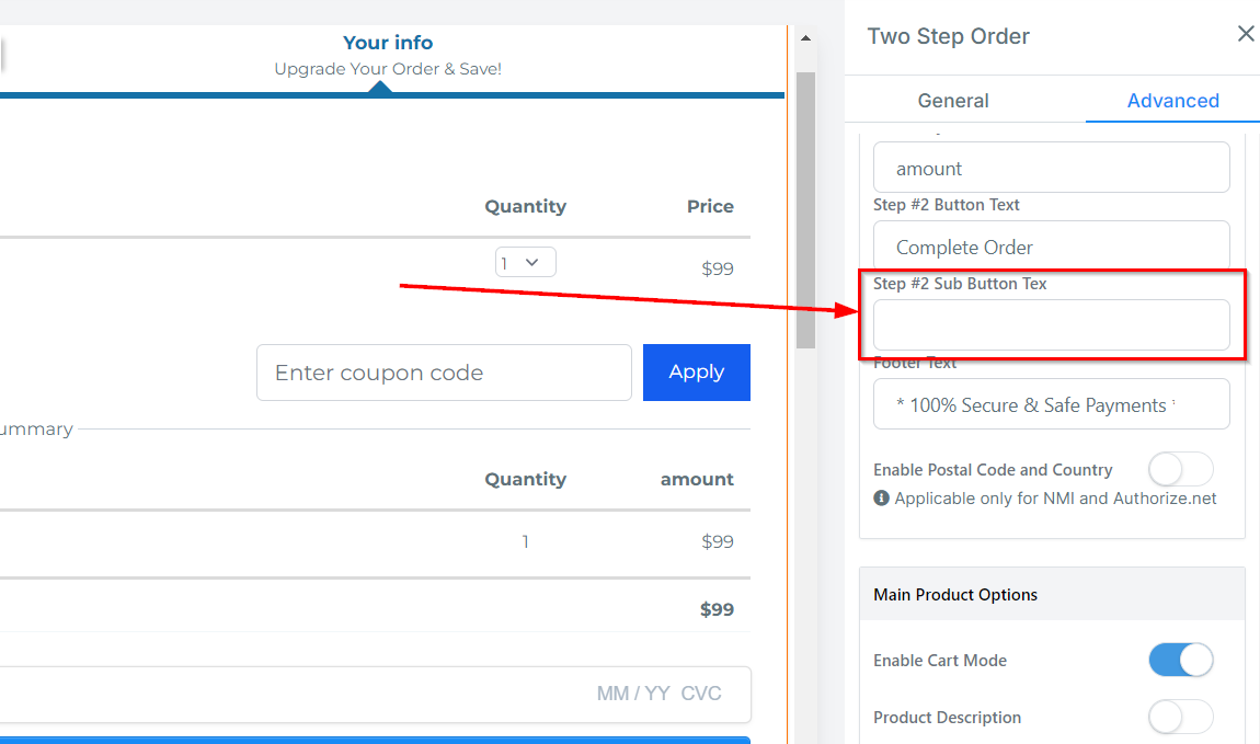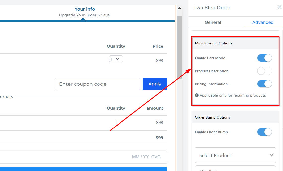 Order Bump Options