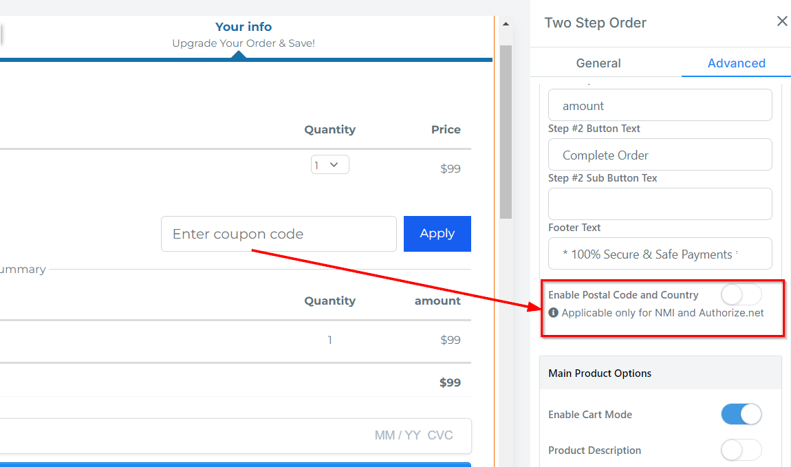 Offer discounts to your customers using promotional codes by toggling the βEnable Coupon Codesβ switch.