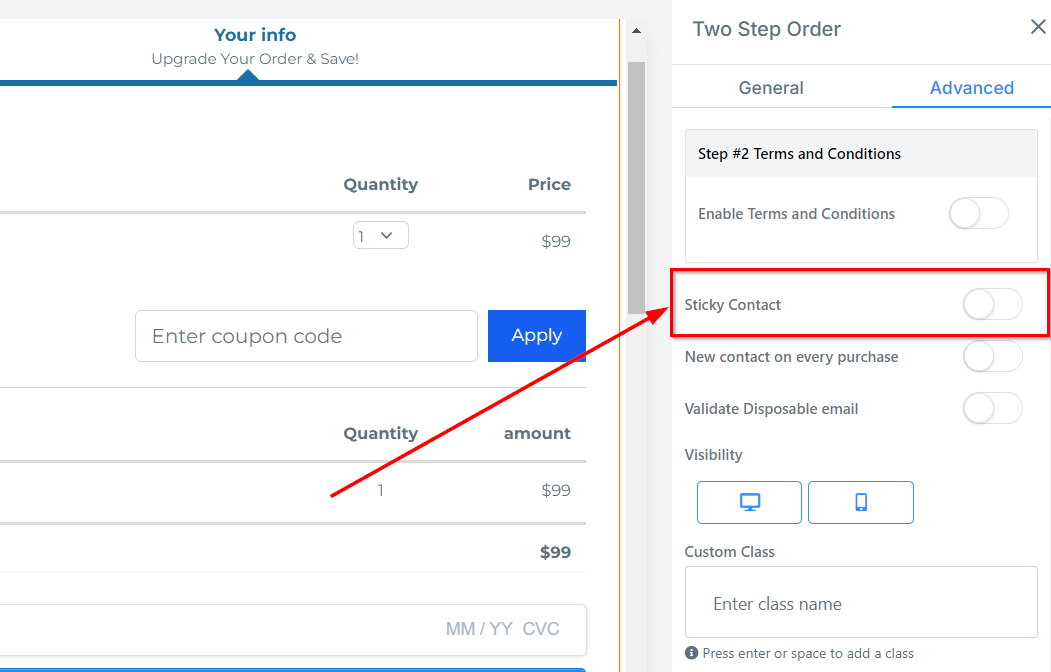Toggle on or off to add or remove the sticky contact. When turned on, this will auto-fill the customer's information if their data was saved in the system.