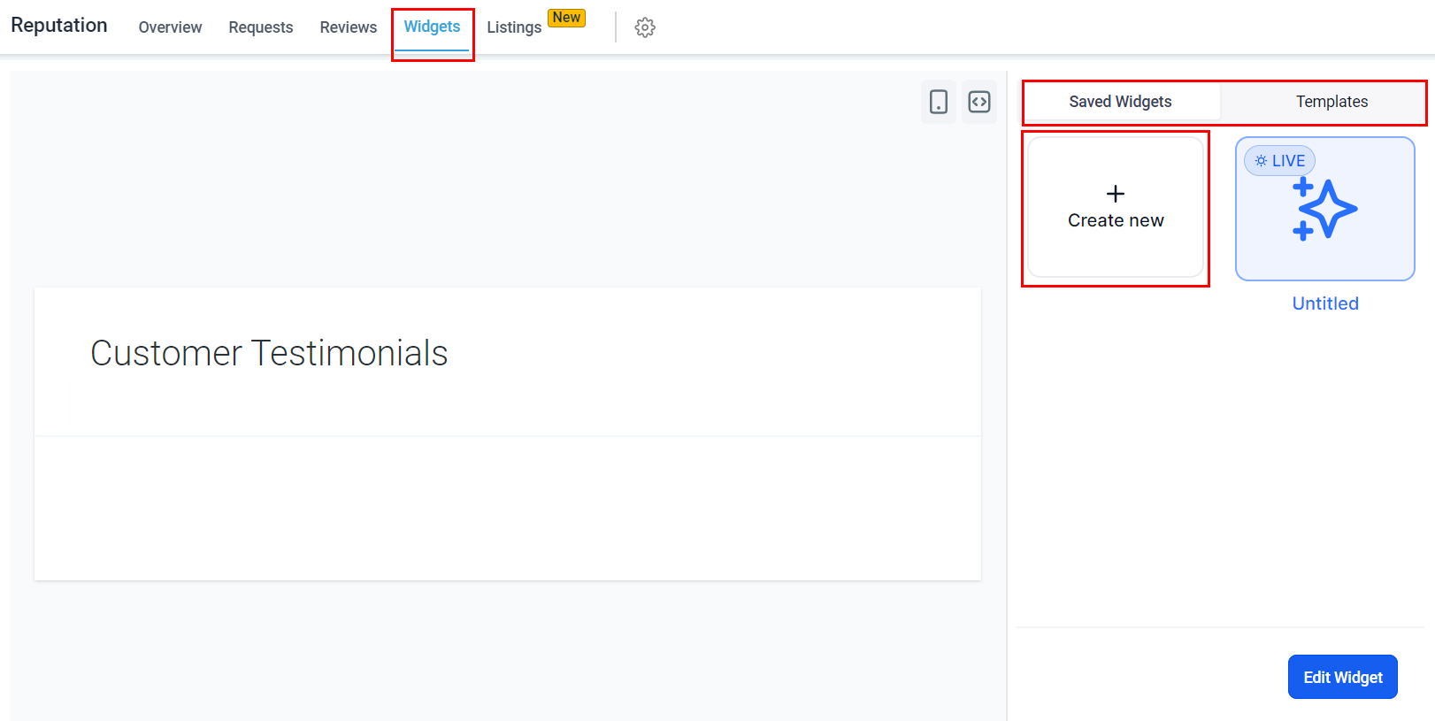 Click "Create New" to start customizing your widget.