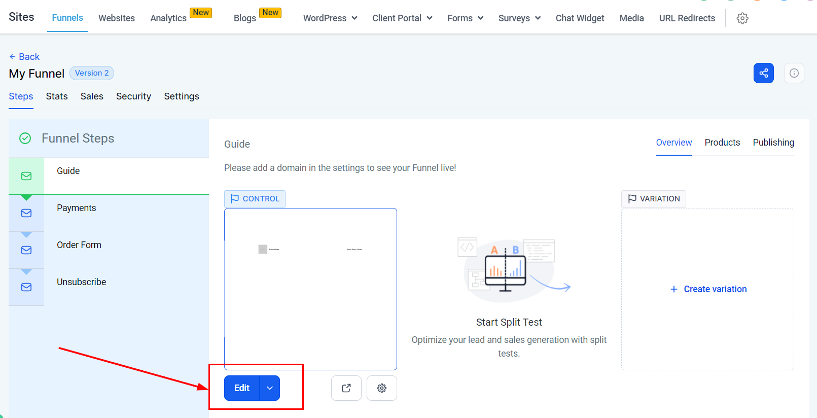 Access the editor for the funnel or website page where you wish to add the review widget.