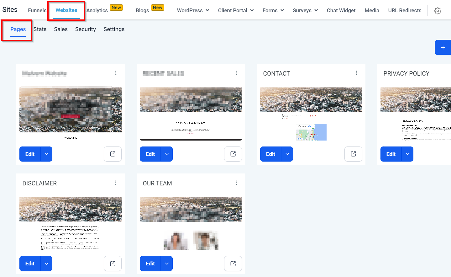 Locate the Page to be Edited: Within your CRM, navigate to the page you want to update such as a funnel or website page, or message template.