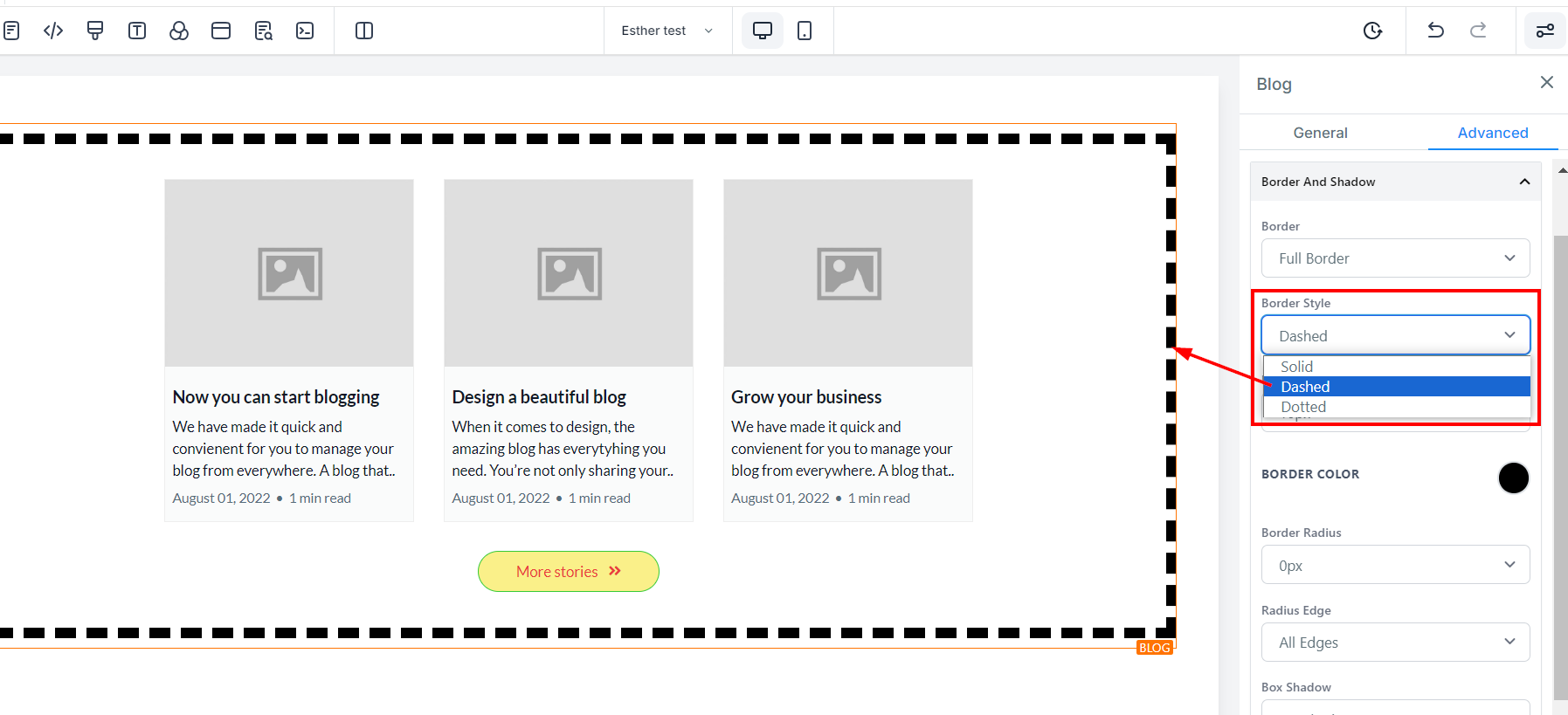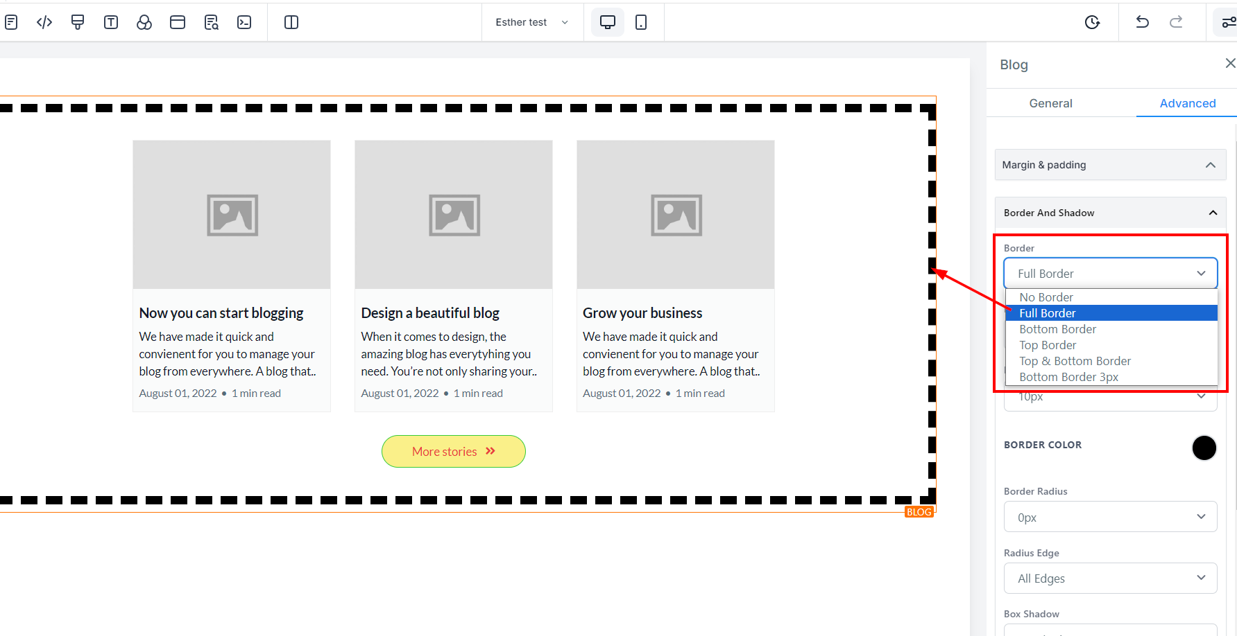 Select your preferred border type from the available options. Upon selection, the editor will adjust to display a preview of the chosen border style.