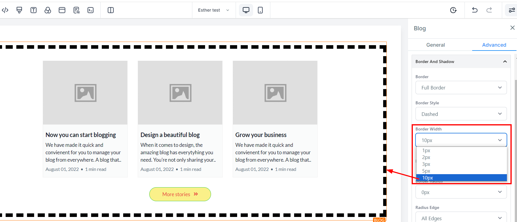 Adjust the thickness of the border within the border width section.