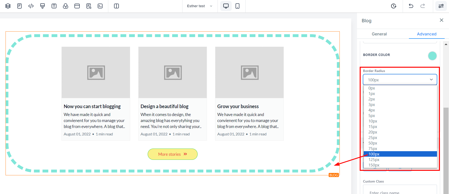 Adjusting the border radius curves the edges of the border. The higher the value you select, the more pronounced the curvature becomes.