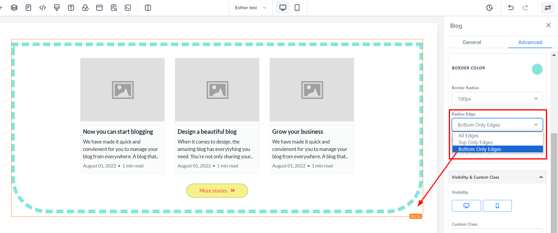 The Visibility setting allows you to determine whether your blog post element should be displayed on mobile devices, desktops, or both. You can select your preferences by highlighting the corresponding icon.