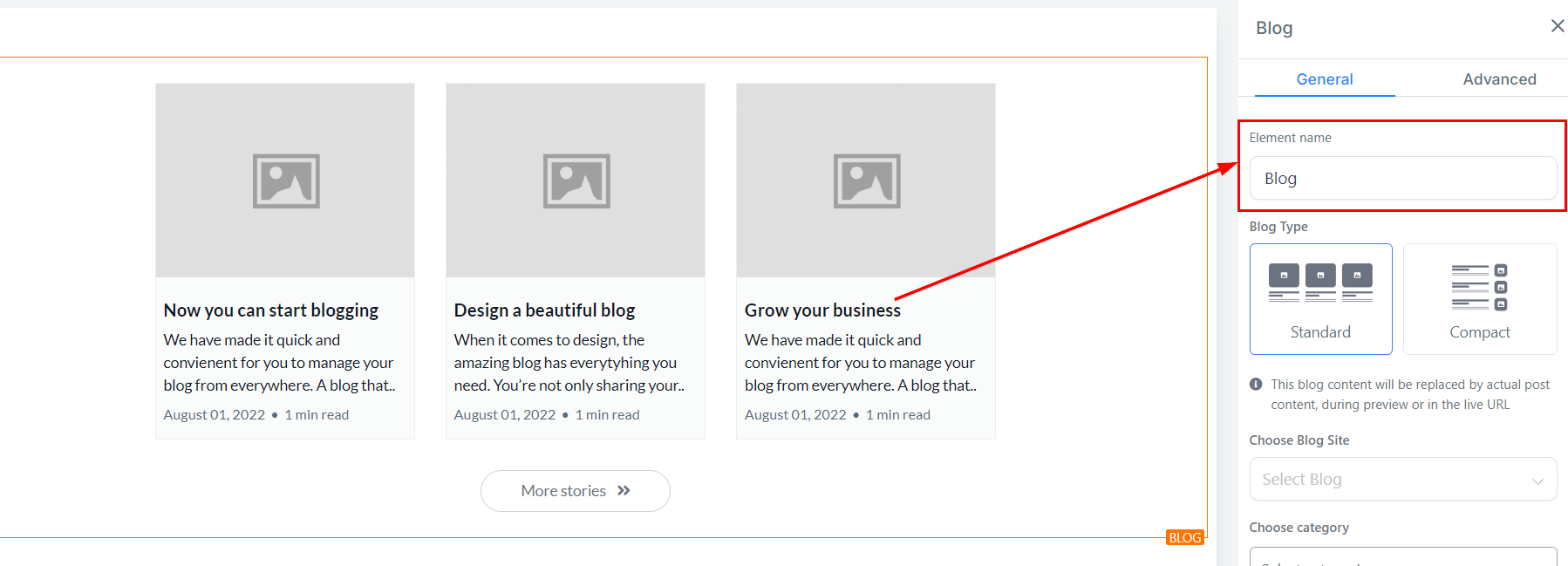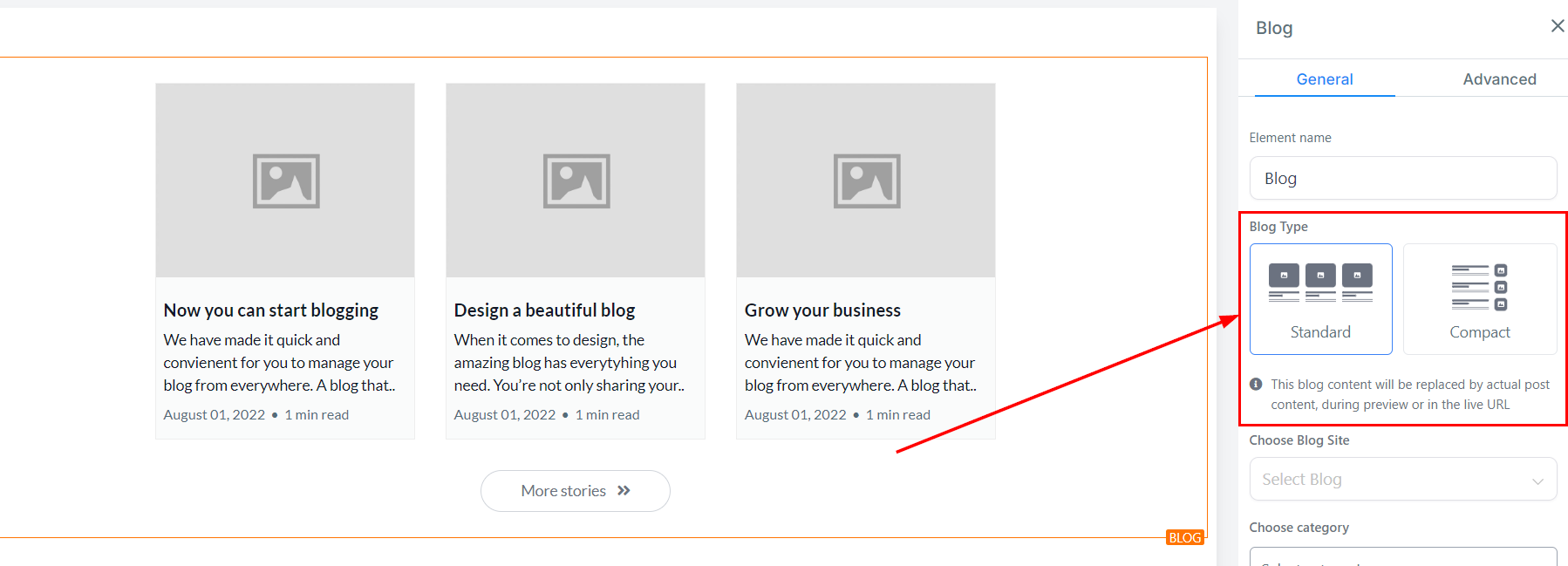 Standard: You can decide to use the standard type which has the blogs in a Grid View.