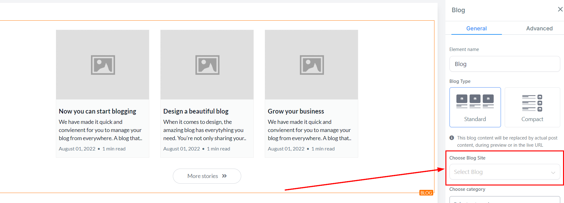 Select the blog site you would like to display.