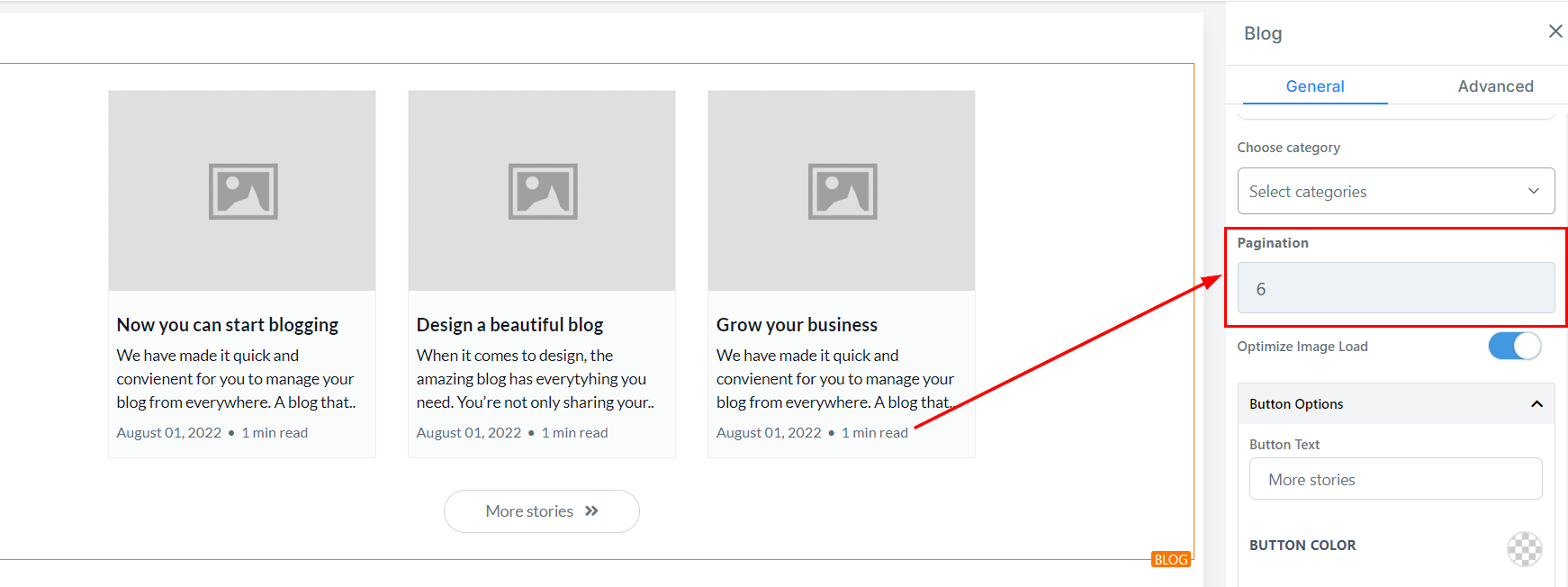 In the Pagination settings, you can choose the number of blog posts to display on each page. While it is recommended to keep this number between six and nine posts, you may adjust it according to your preference.