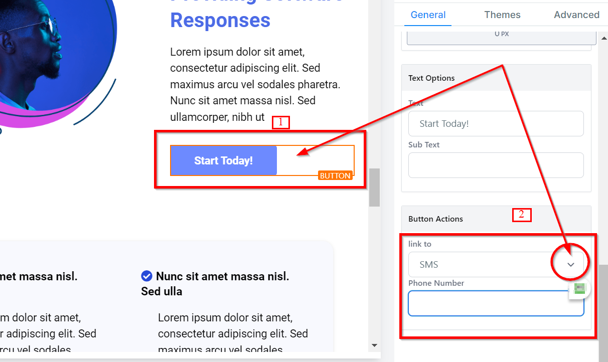 Edit the button text to indicate the action, e.g., "Call Us Now."