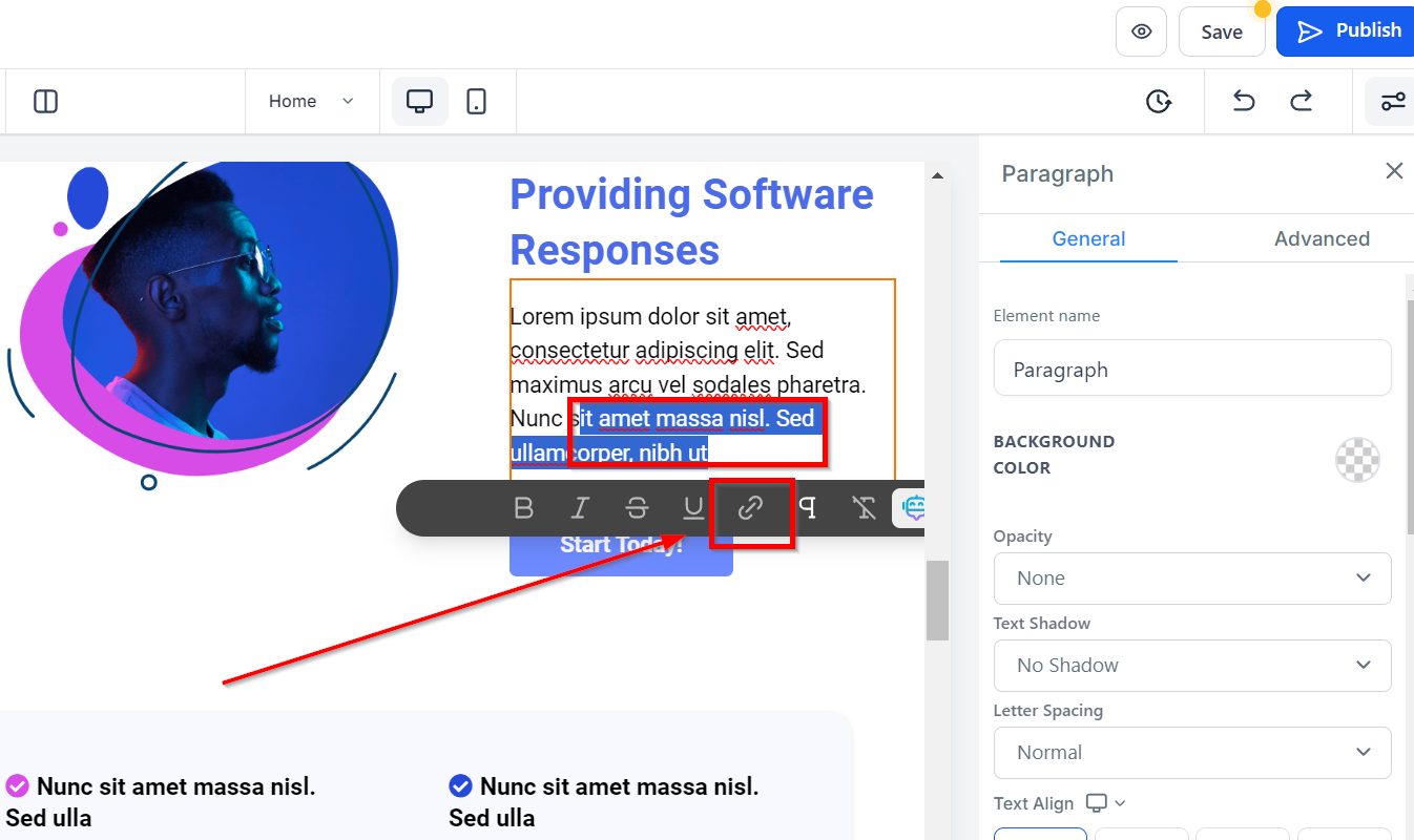Click the "Add A Link" icon in your text editor.