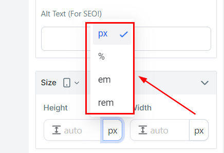 Select your preferred sizing unit (px, em, rem, or %)