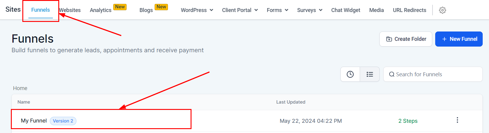 Access the Page Builder: Navigate to the specific funnel or website page within the CRM where the video is or will be placed.
