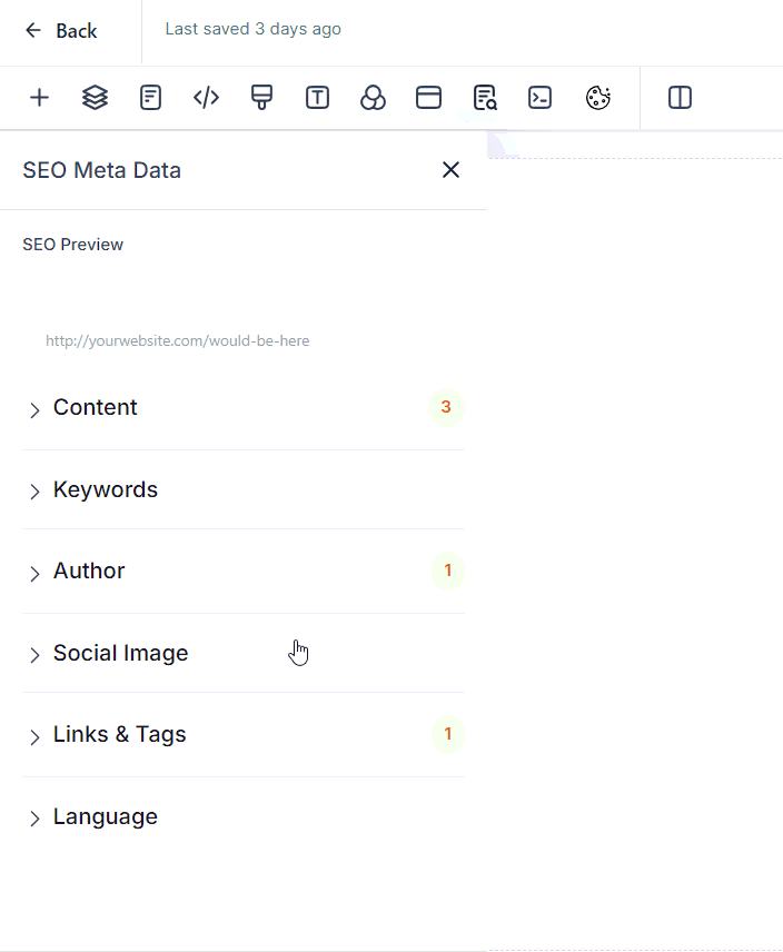 Open SEO Meta Data Settings: Select "SEO metadata" from the menu.
