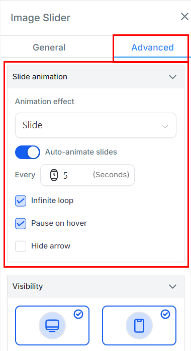 Animate Your Slider: To make your Image Slider more engaging, explore animation options. These include auto-animate for smooth transitions, infinite looping for continuous play, and hover triggers for interactive effects.