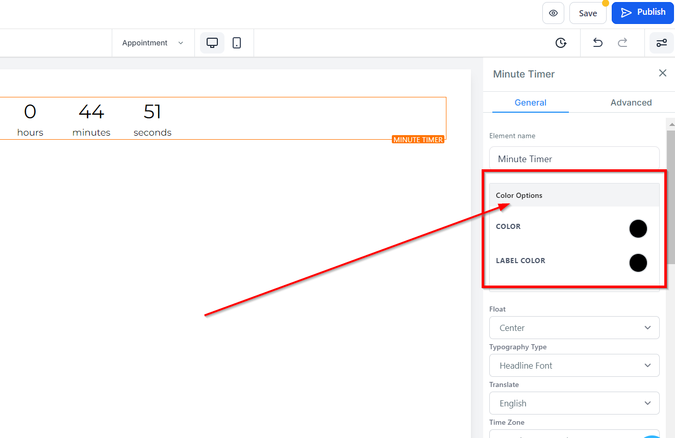 Similarly, you can modify the label color of your timer similarly. Leveraging the Color Options feature can enhance the visual appeal of your timer and create a more engaging and compelling web page for your audience.