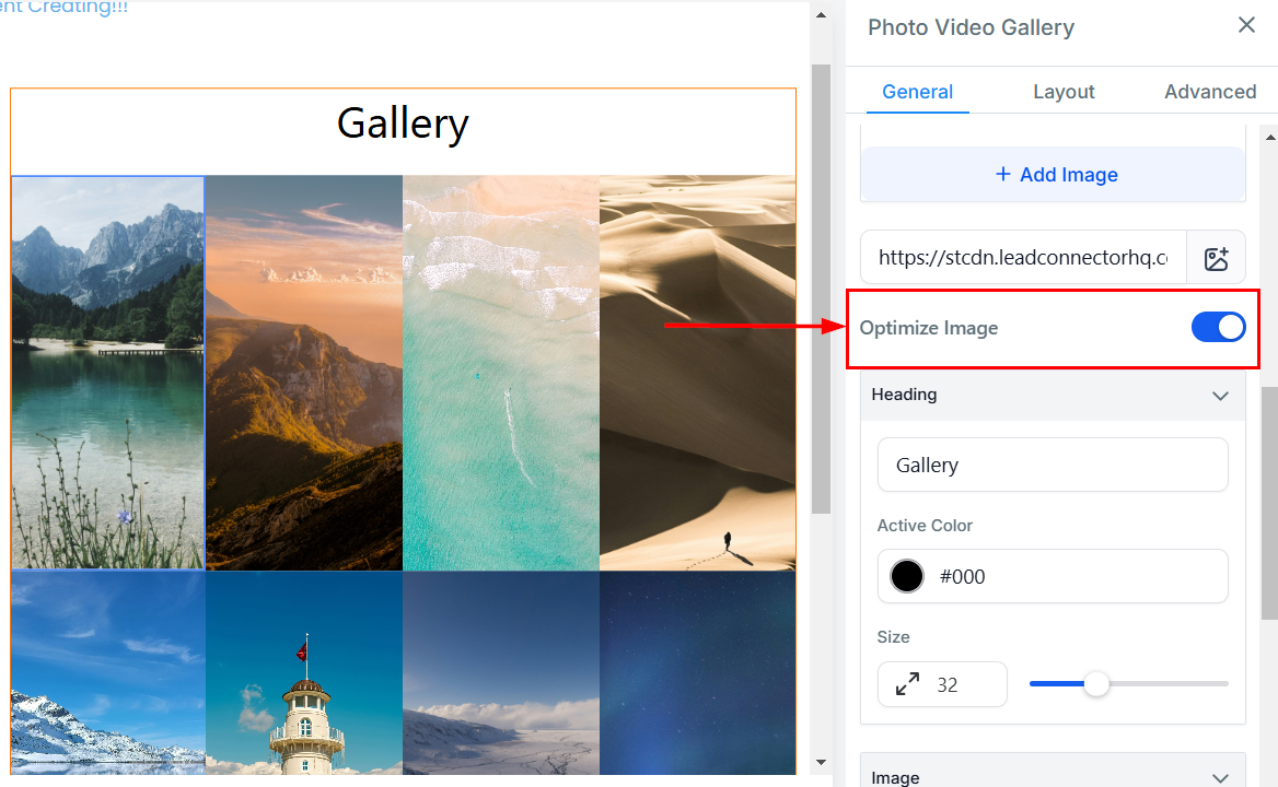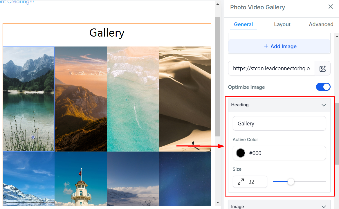 Heading Option: Add a custom heading to your gallery to provide context or highlight branding.