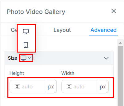 Enter the desired height and width of the element to ensure your gallery is fully responsive and optimized for all devices.