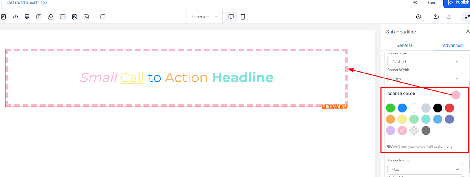 To change the sub-headline background color, click on the content you want to adjust and choose the desired color.