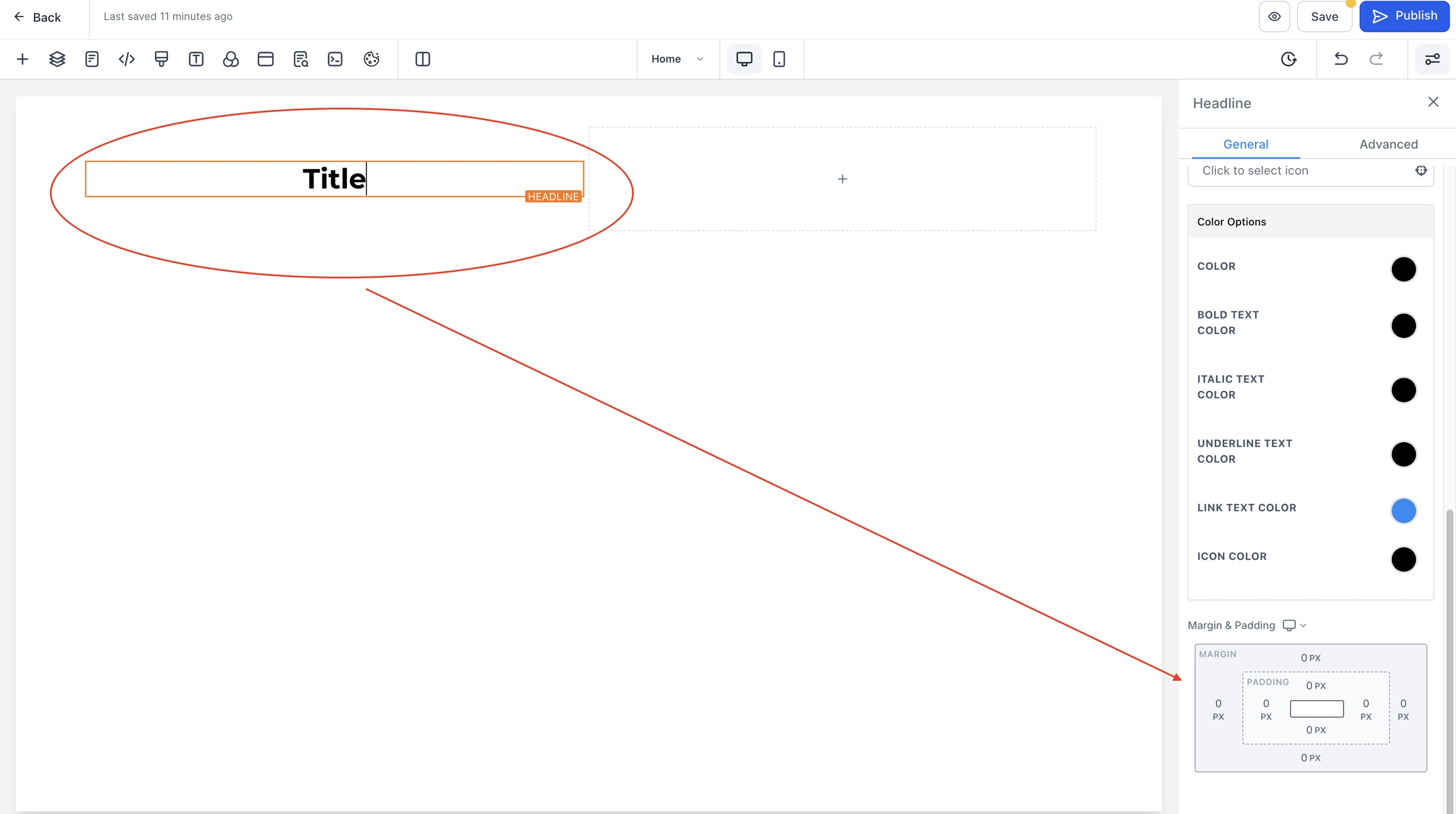 Detailed Explanation:- Element Name/Title: You can keep the default name/title of an element or rename it for easier identification, especially useful when managing multiple elements. - Spacing Options: Adjust the position of your content using the Padding and Margin settings. These adjustments help achieve a visually balanced page, enhancing user engagement.
