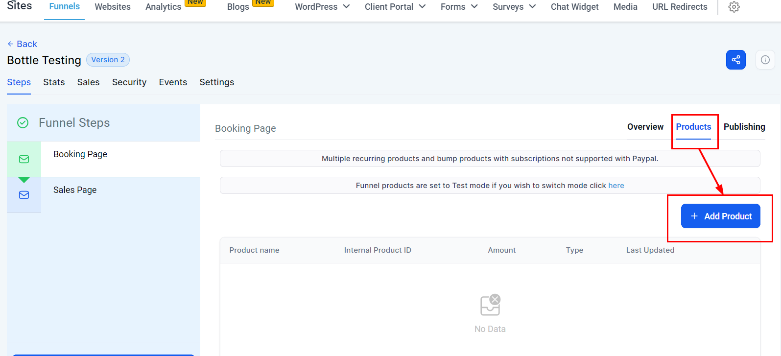 Add Product to Funnel Step: In the funnel's product section, add your upsell product. This step is crucial for the product to appear as an option for the one-click upsell.