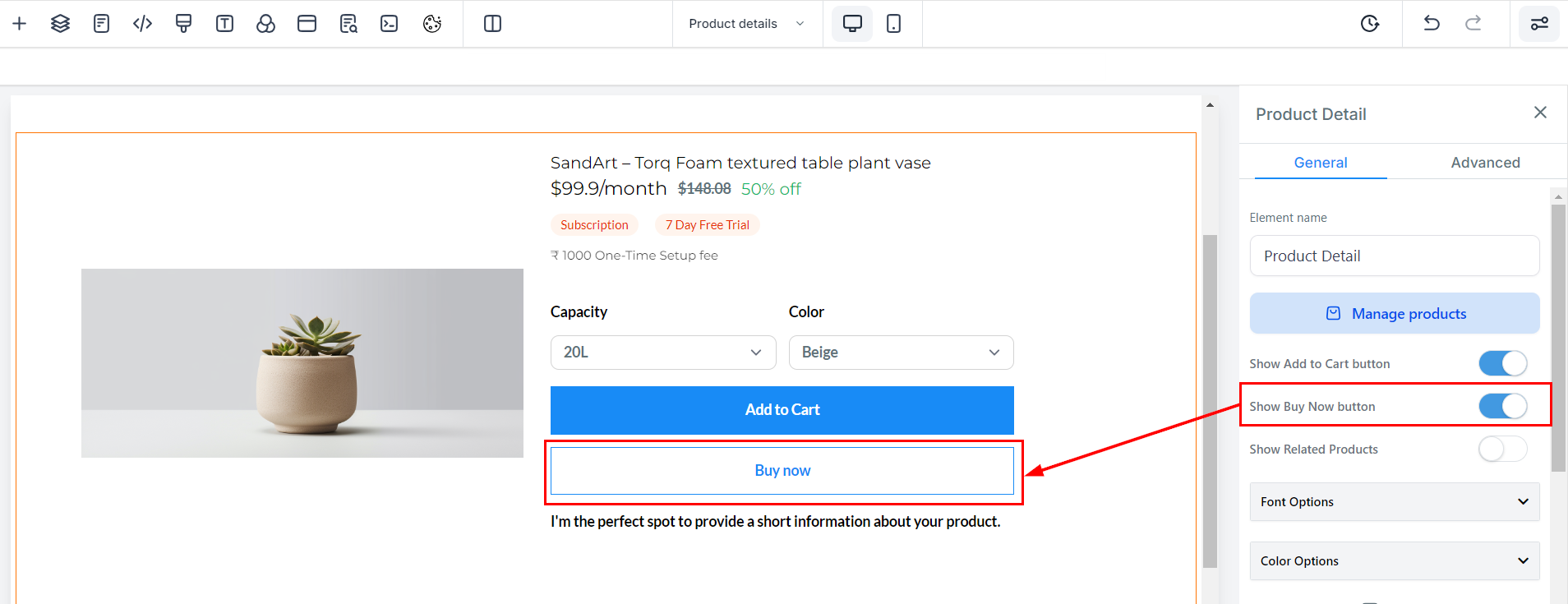 To activate the "Buy Now" button on your product detail page, follow these steps: