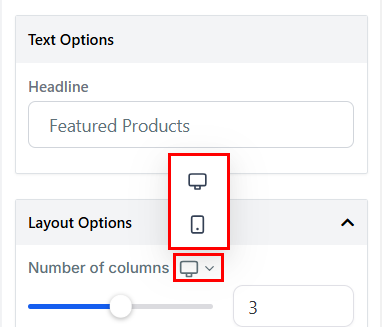 Adjust the number of products per row in the Layout tab. By default, 3 products are displayed per row, but this can be updated to a maximum of 5 on desktop and 2 on mobile.