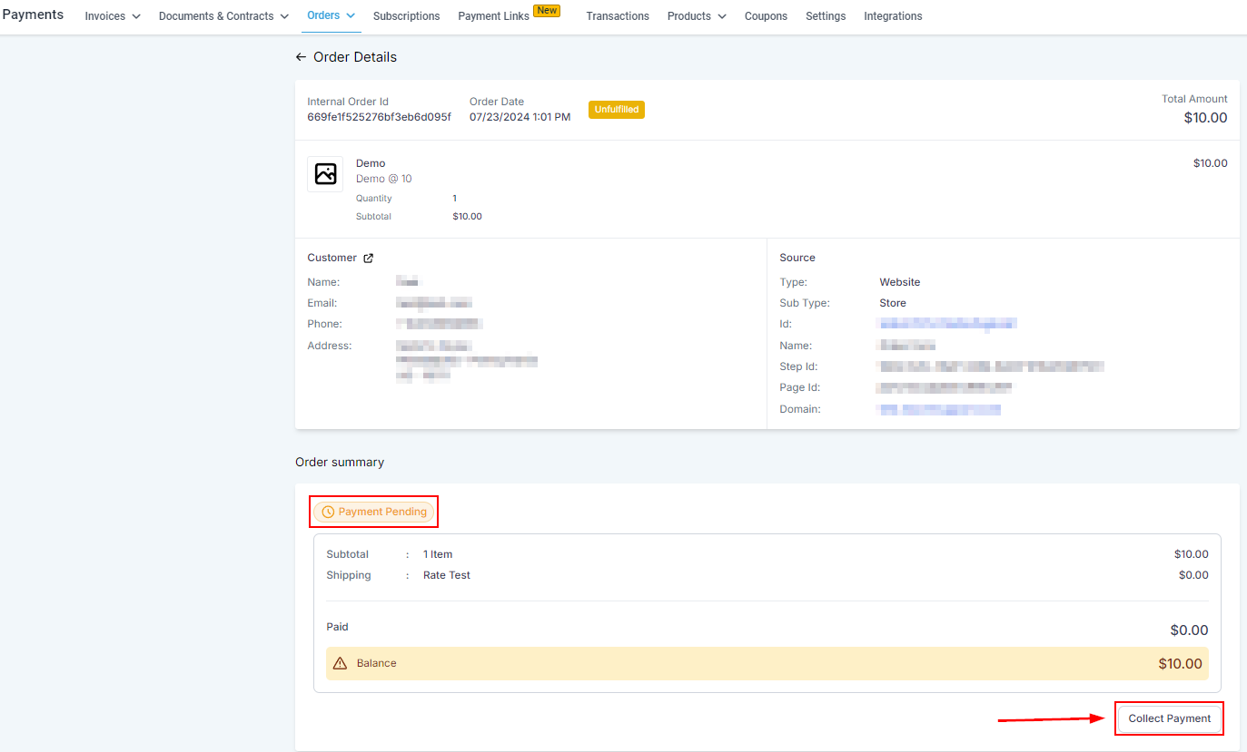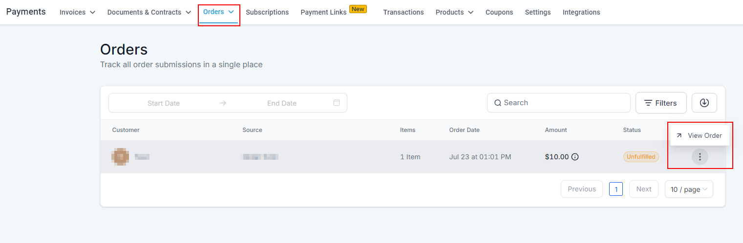 When a client places an order using one of the Manual Payment Methods you can record the collected pay by accessing the Orders tab in the Payments section. Click on View Order to check the details.