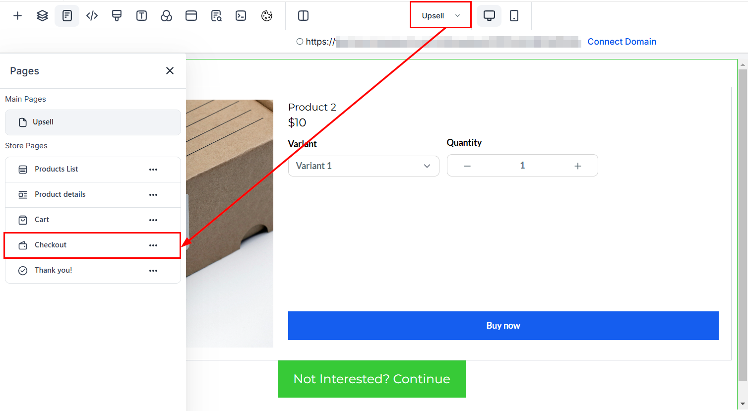 To allow customers to bypass the upsell, add a button with an action that redirects users directly to the Thank You Page. This provides flexibility for those who do not wish to purchase additional products.