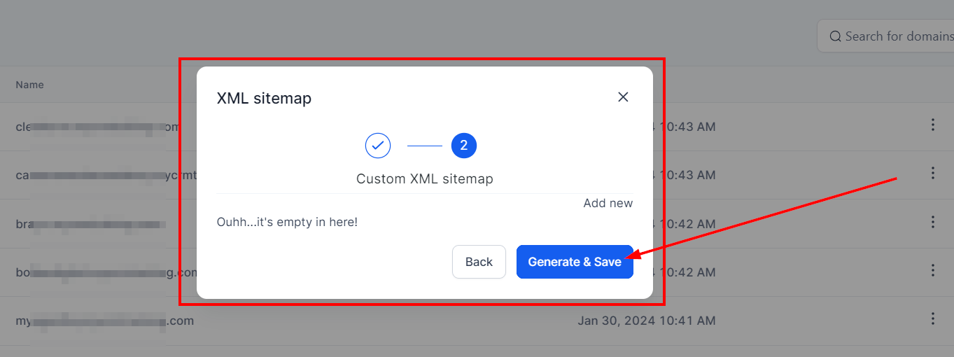 Next, locate the specific domain you'd like to add the sitemap to and click on the 3-dot menu to access the XML sitemap option. By adding an XML sitemap, you can enhance your website's search engine optimization and improve its overall visibility.