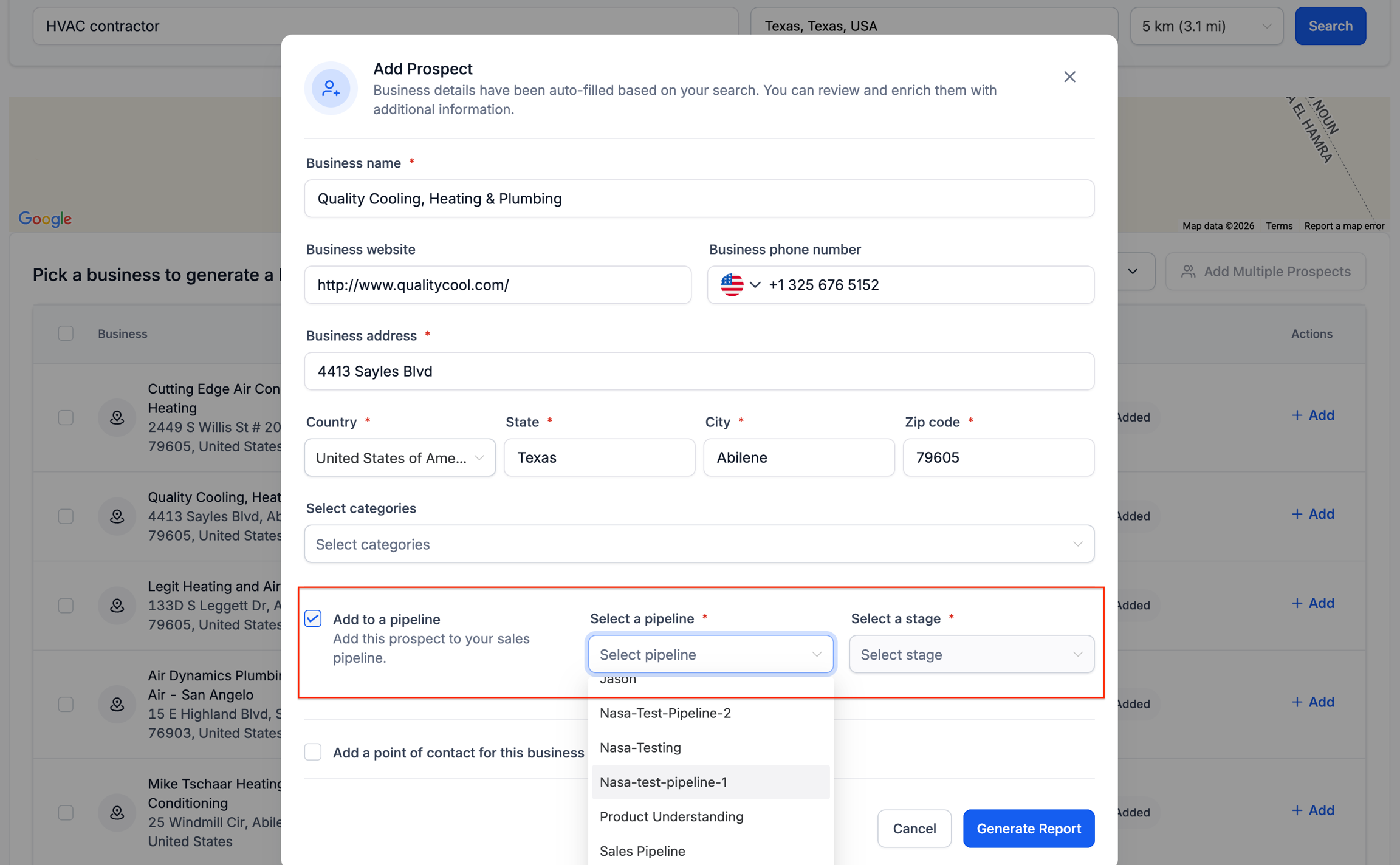 You can now send new prospects directly into your sales pipelines from the Prospecting Tool β making it easier to move from discovery to deal management without manual steps.